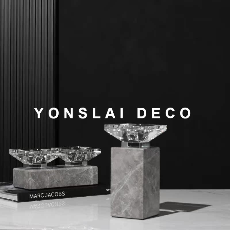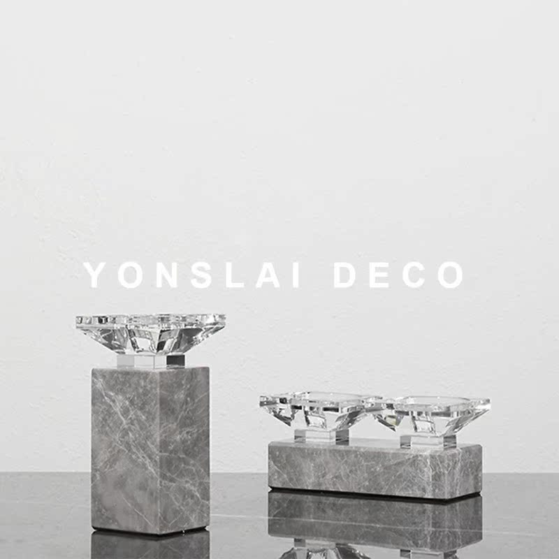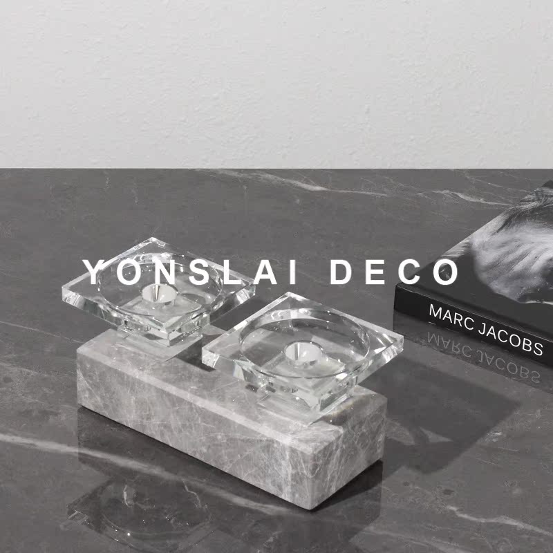 简约现代大理石烛台玻璃几何摆件餐桌家居客厅卧室样板间软装饰品