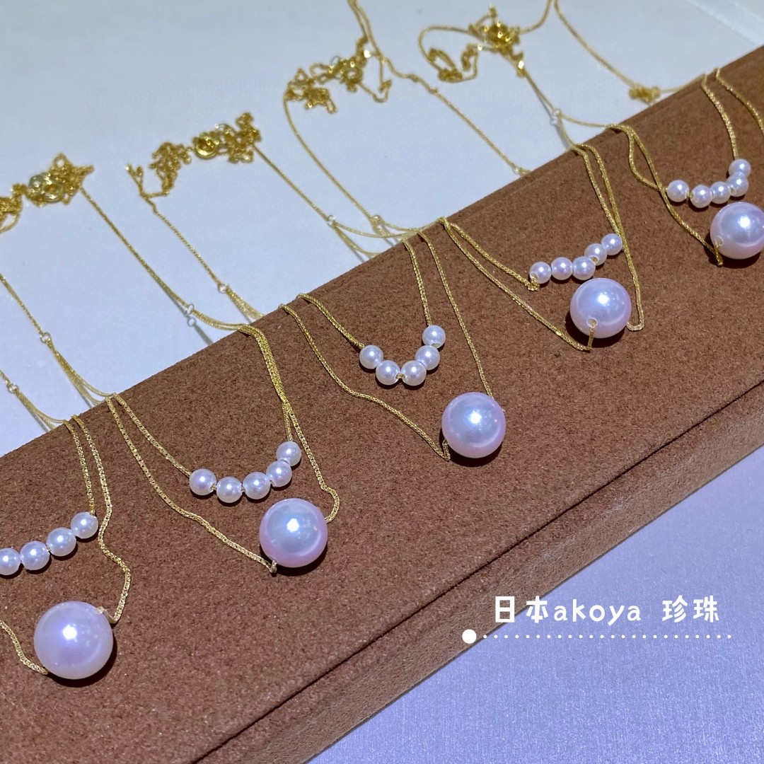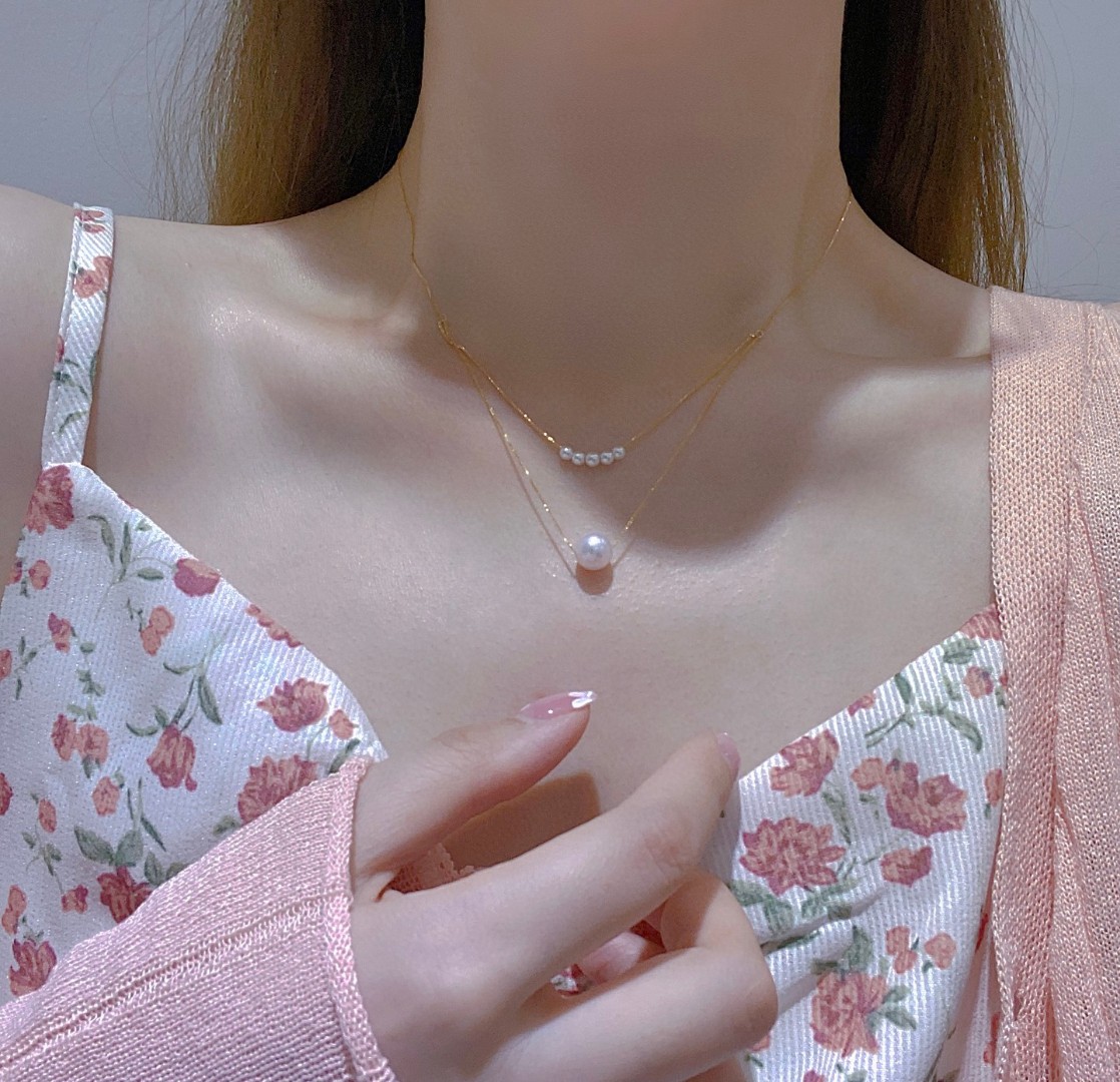 G18k金双层项链肖邦链,3-8mm日本天然ak珍珠,白透粉色