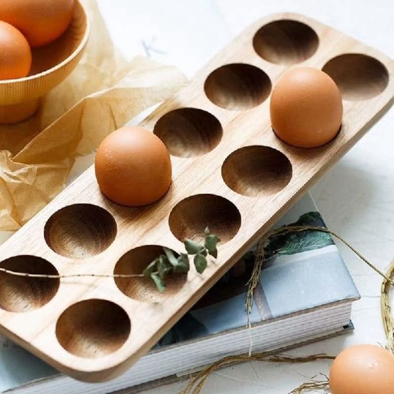 New 2 Pcs Japanese Style Wooden Double Row Egg Storage Box