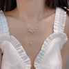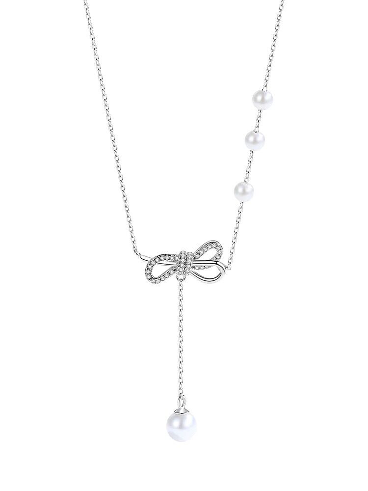 正品香港正生银饰s925蝴蝶结珍珠流苏项链女潮首饰仙气网红抖音锁