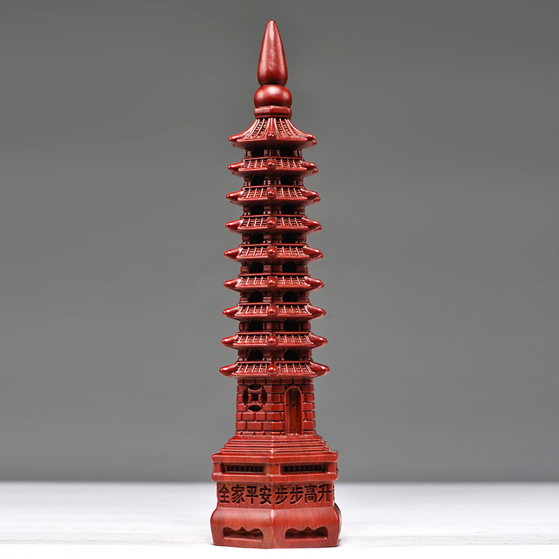 红色纯木质文昌塔九层摆件实木雕刻9层13层办公室装饰红木工艺品