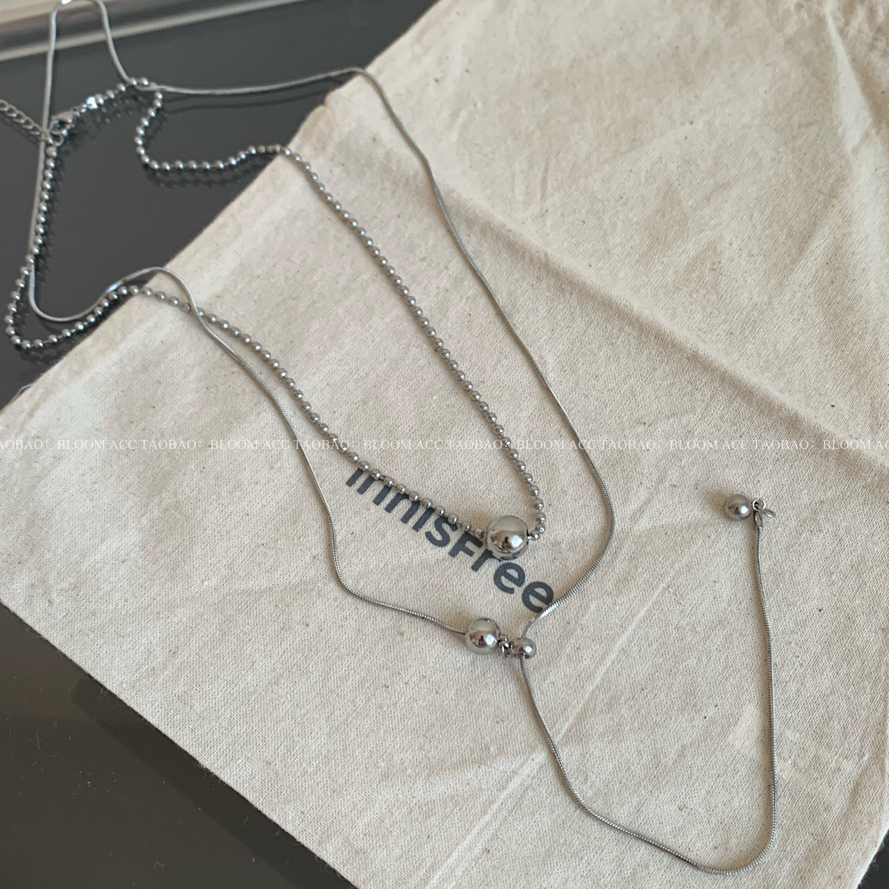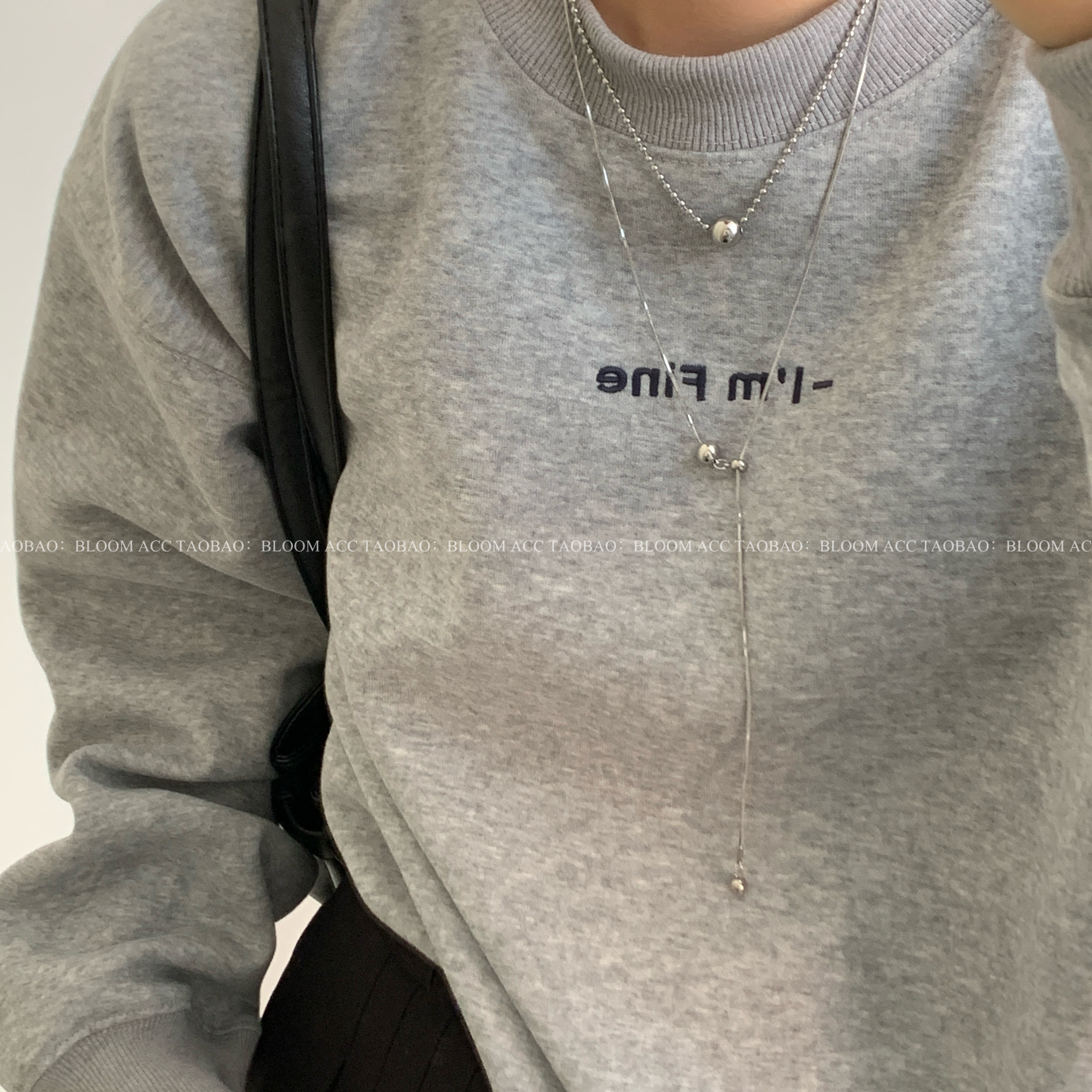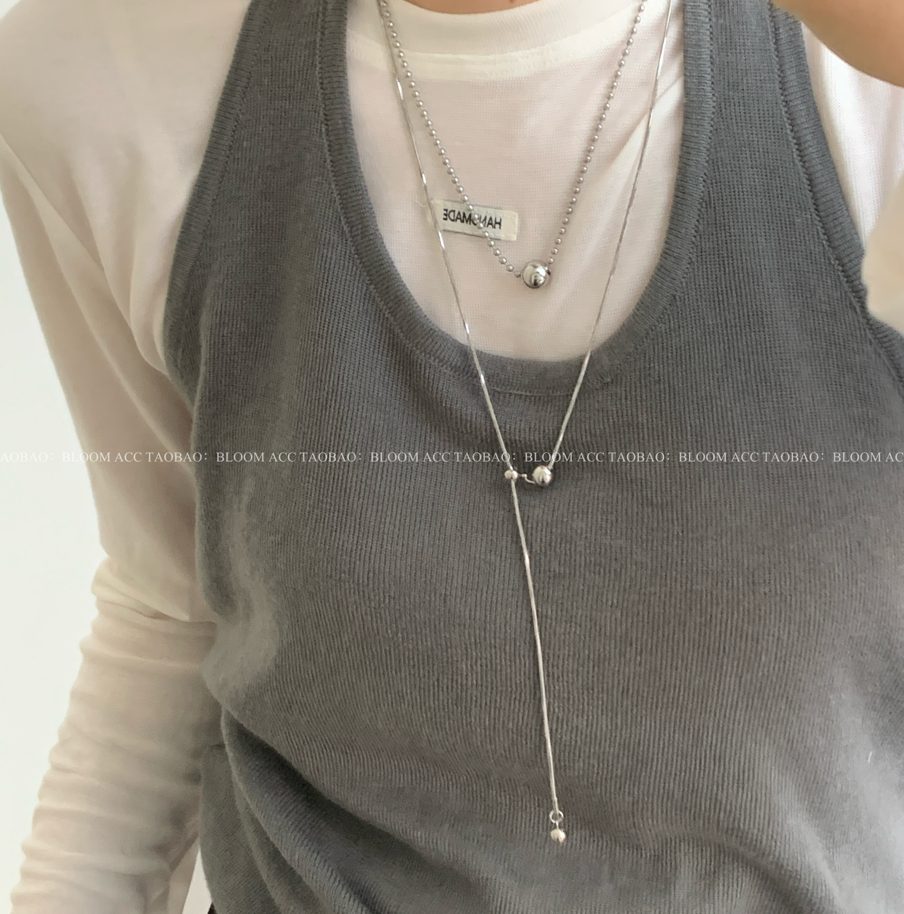 韩国ins风博主同款银色圆球吊坠项链女简约百搭双层毛衣链锁骨链
