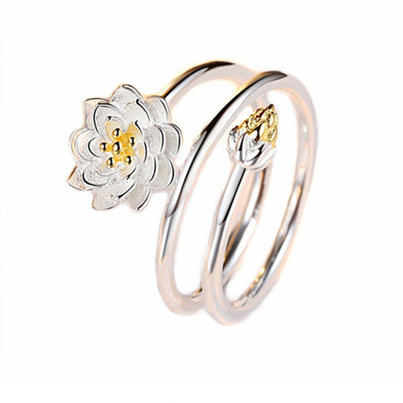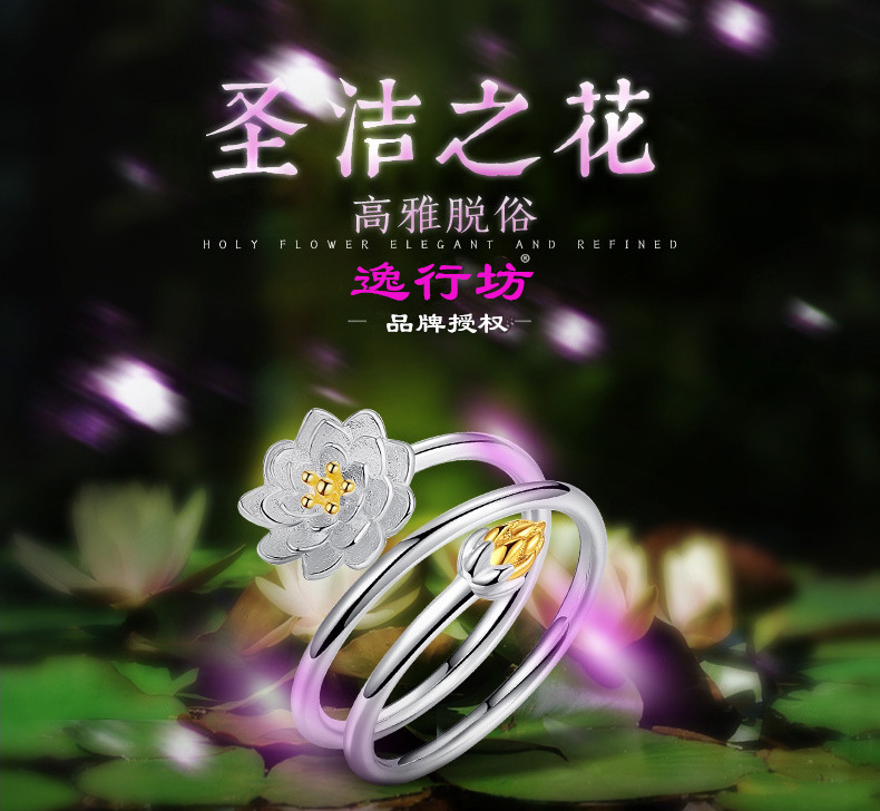 925纯银莲花朵戒指环 女开口韩国版潮人戒子个性简约荷花学生尾戒