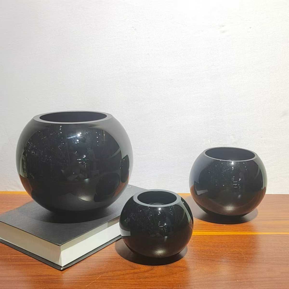 花瓶插花摆件玻璃家居黑色圆球现代客厅桌面装饰原色样板房简约