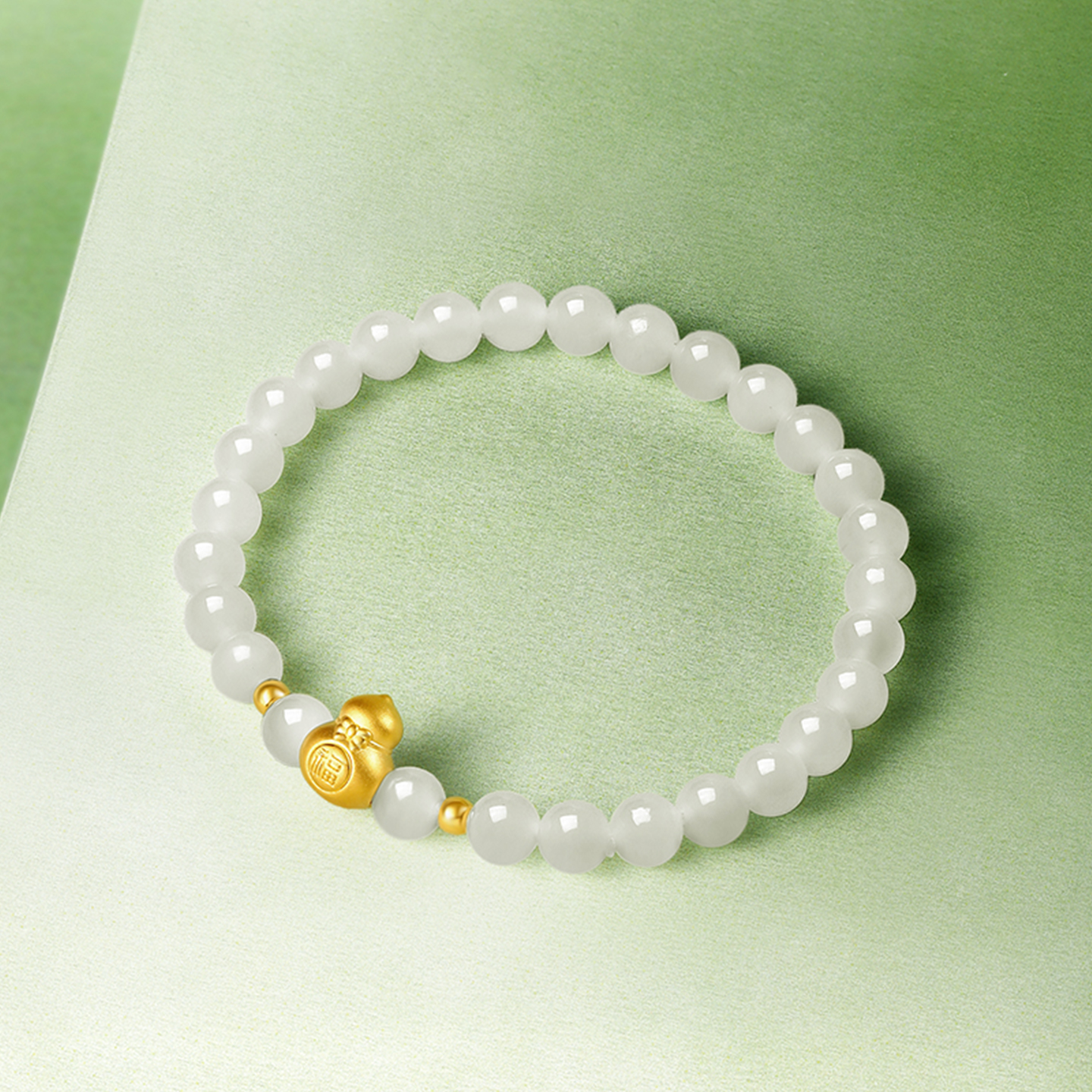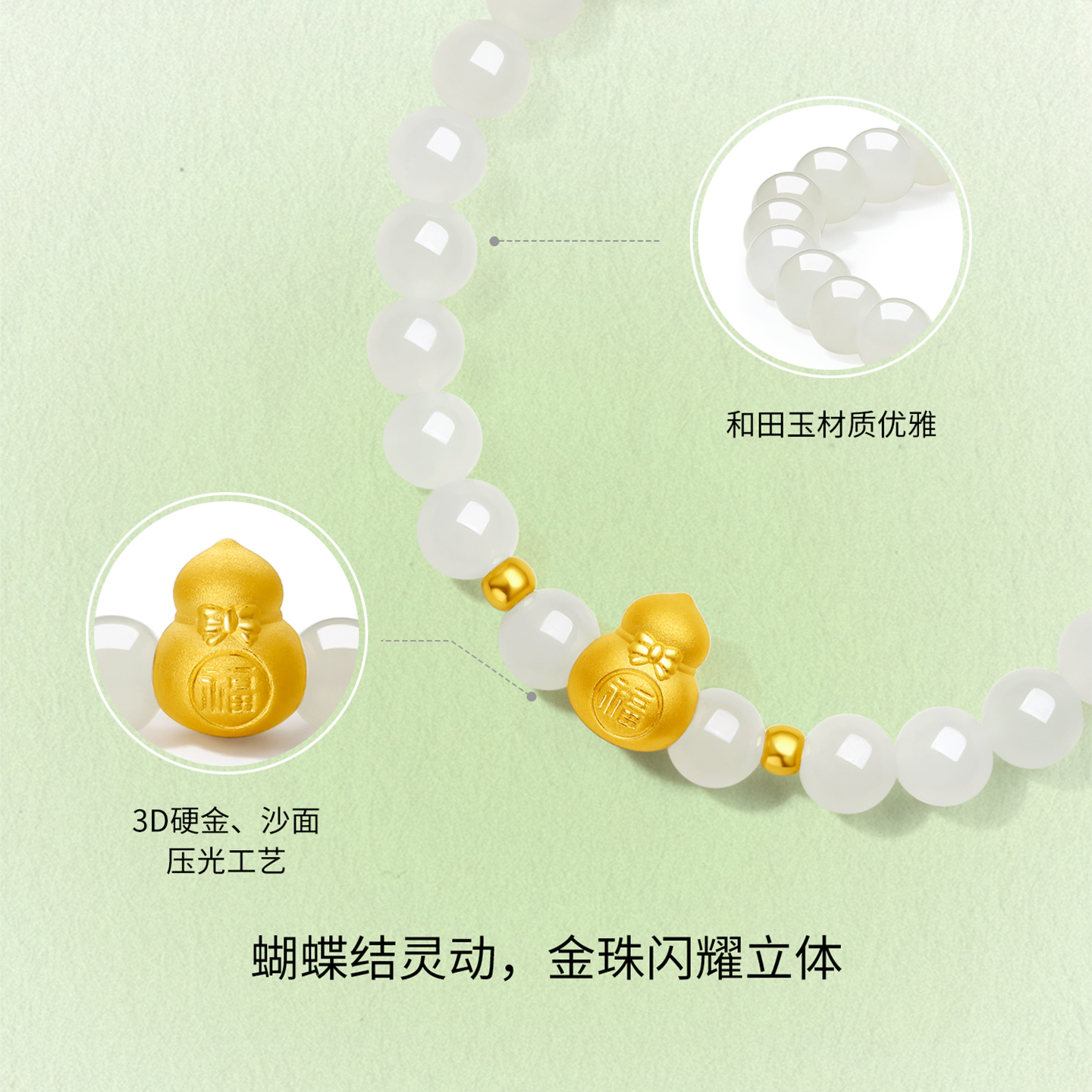 周六福和田玉手串女金镶玉黄金白玉玉石福葫芦手链节日礼物