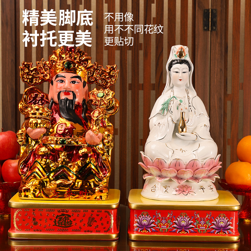 陶瓷底座财神莲花台招财家用陶瓷加高垫台底托摆件神像托架用