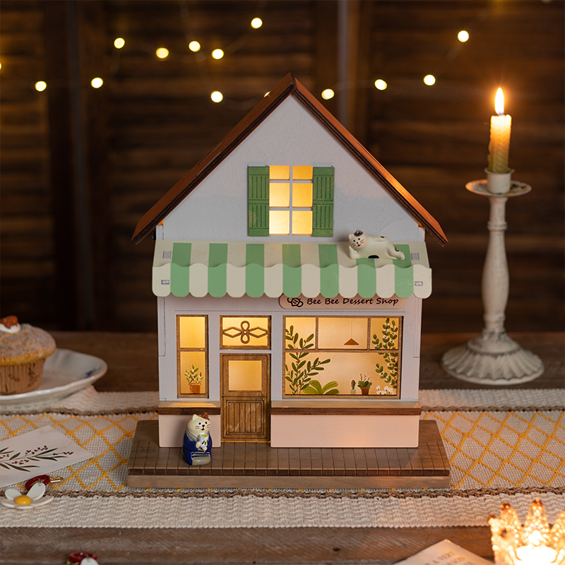速发阿楹 奶油风房子p模型摆件木客厅小院工位桌面布置造景网红店