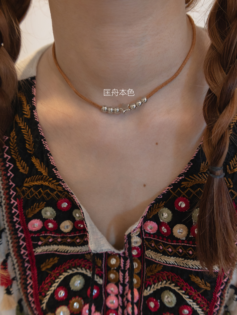 匡舟本色 复古波西米亚民族风 印第安麂皮绒星星串珠项链锁骨链
