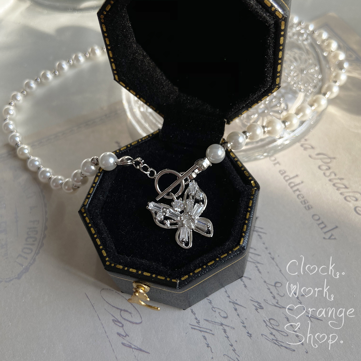 百搭通体925纯银蝴蝶项链女小众设计感白贝高亮珍珠chocker项圈