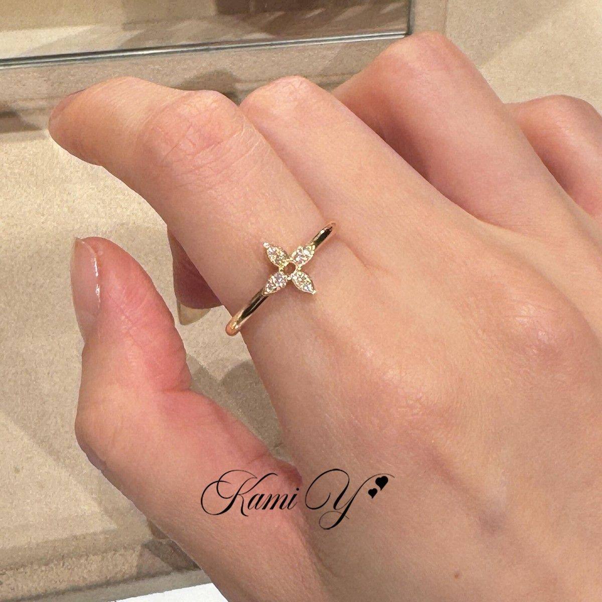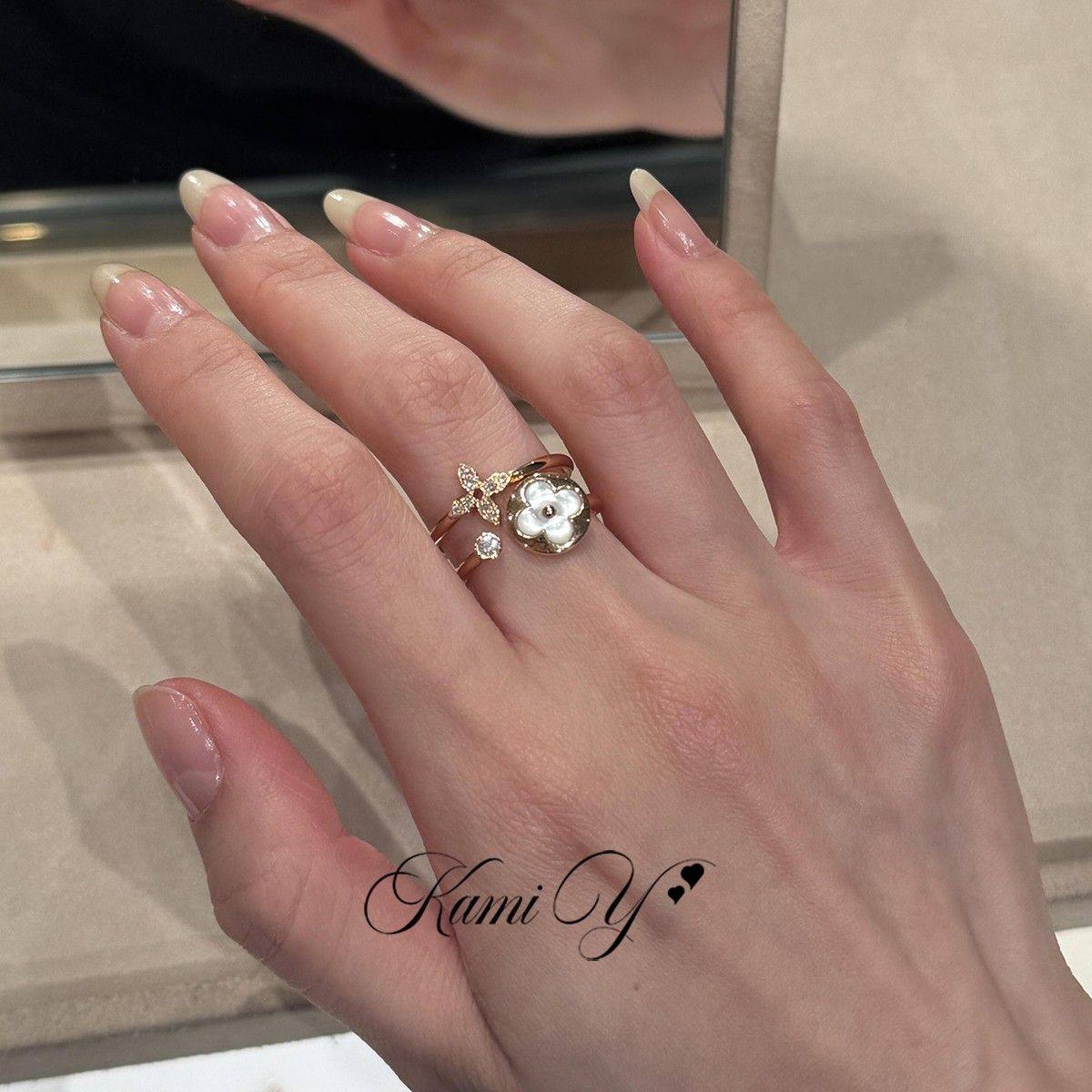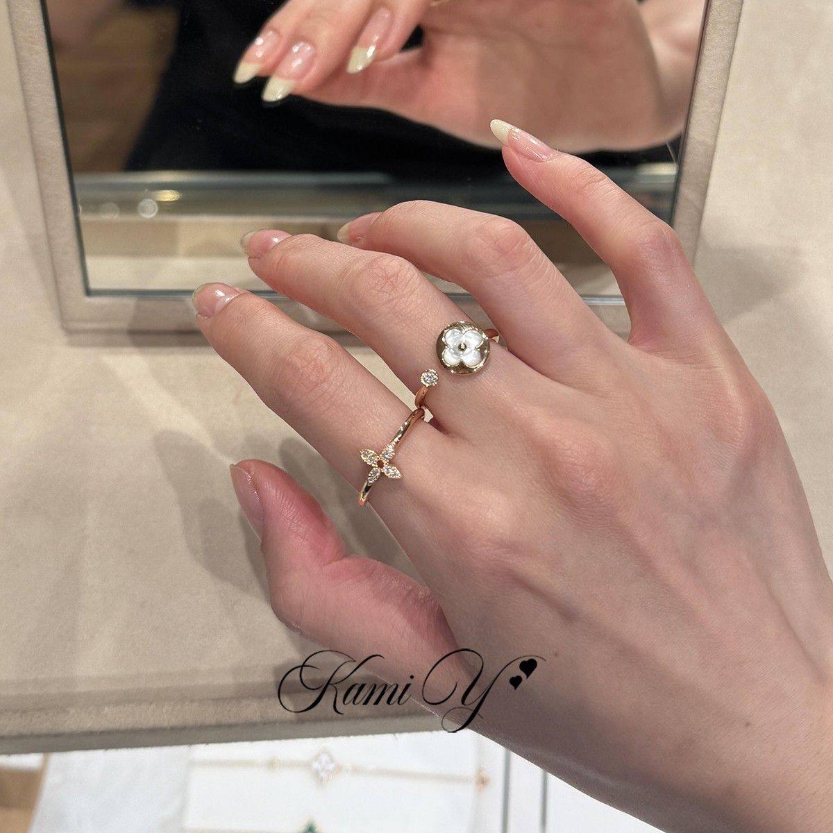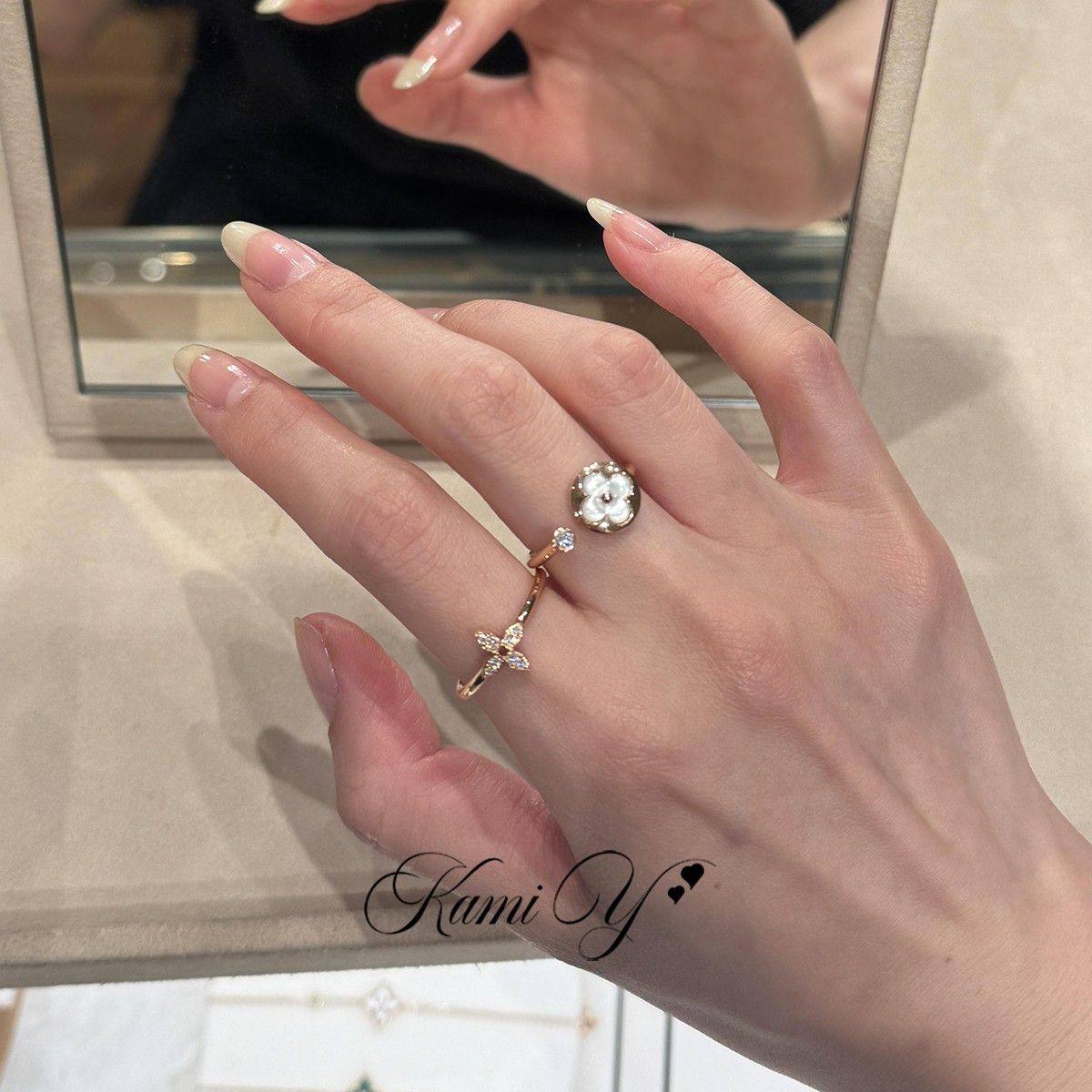 轻奢高级感闪钻贝母幸运花开口戒指女时尚气质小众设计感百搭指环
