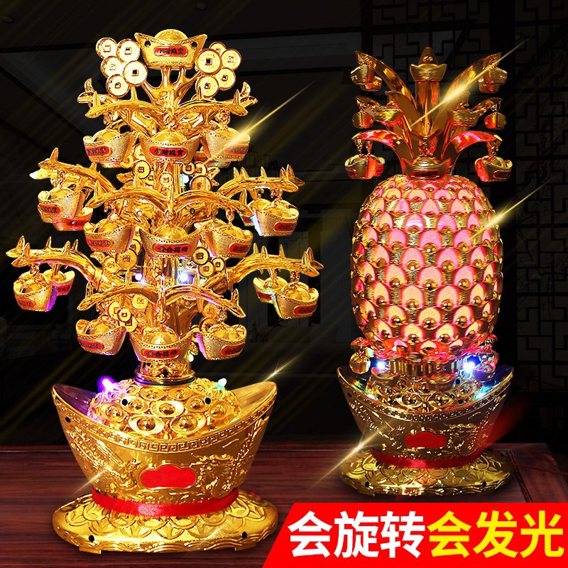 金菠萝摆件 招财摇钱树大号 元宝招财树带灯光可旋转聚宝盆装饰品