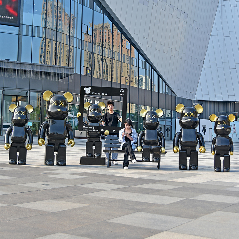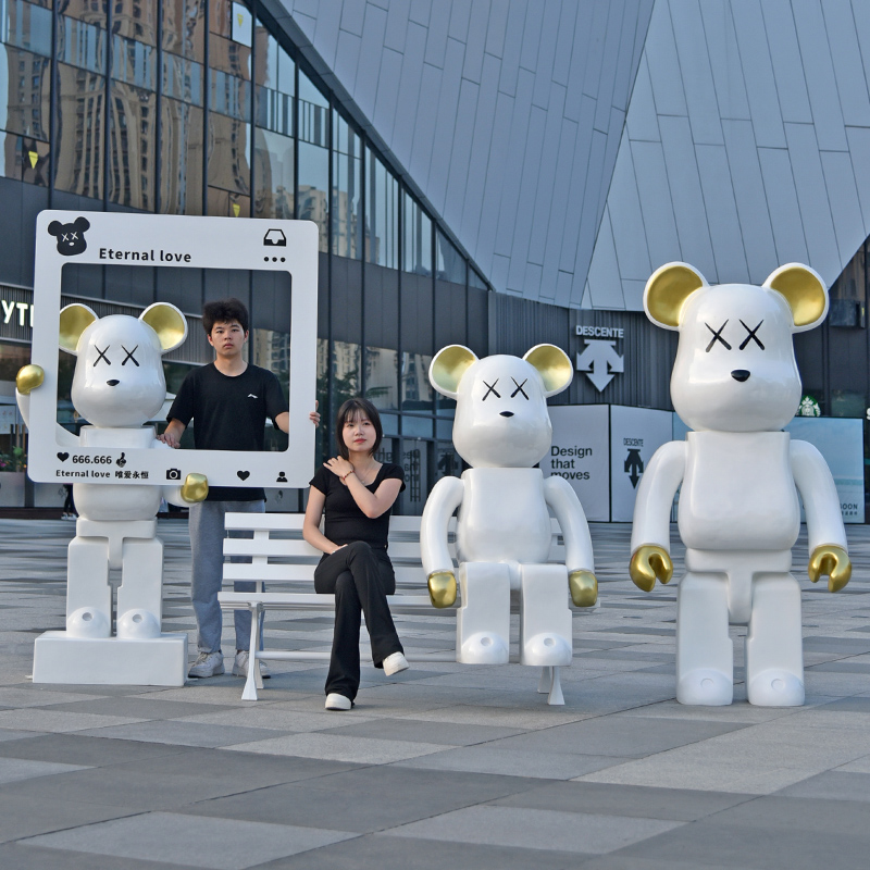 卡通暴力熊落地大摆件积木熊雕塑玻璃钢商场网红打卡潮玩美陈装饰
