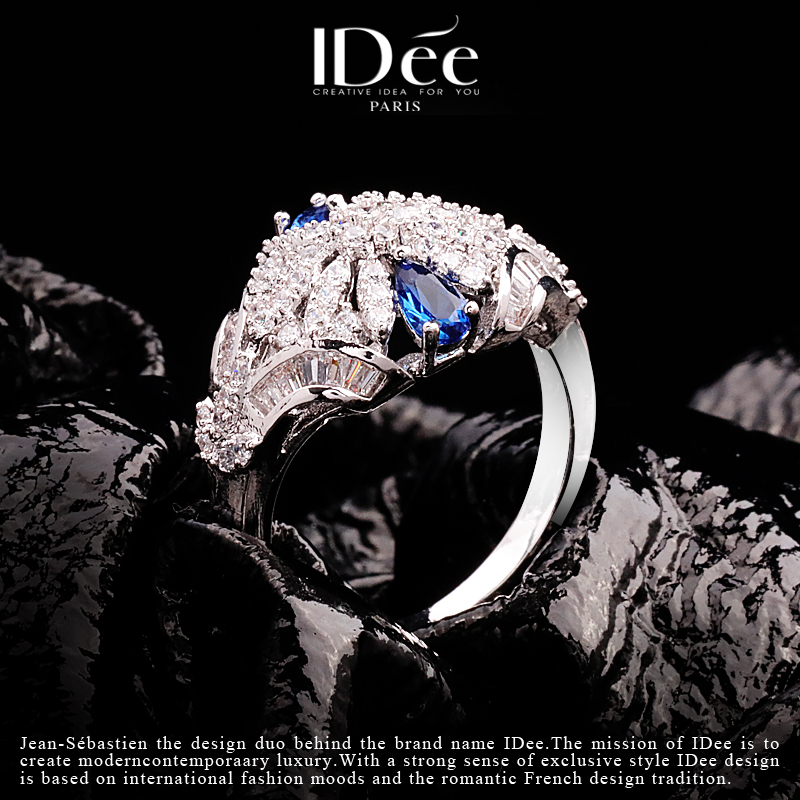 法国IDee思念戒指女时尚潮流气质百搭宴会指环小众设计蓝宝石饰品