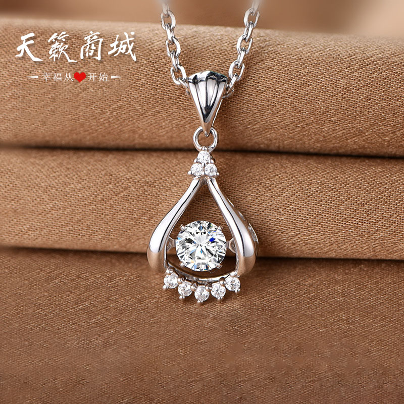 S925纯银镀铂金项链女锆石水滴吊坠时尚百搭锁骨链圣诞节生日礼物