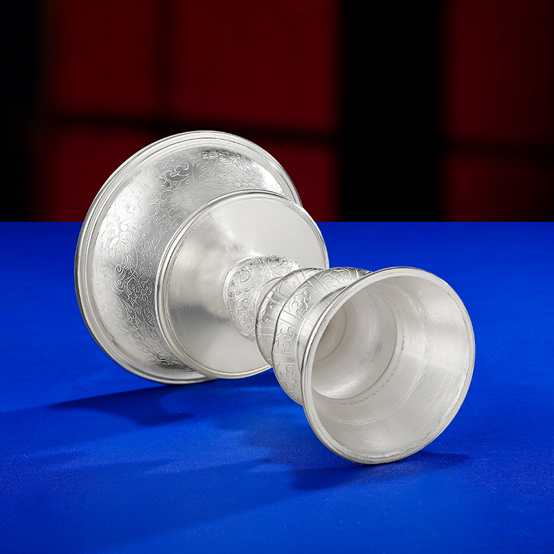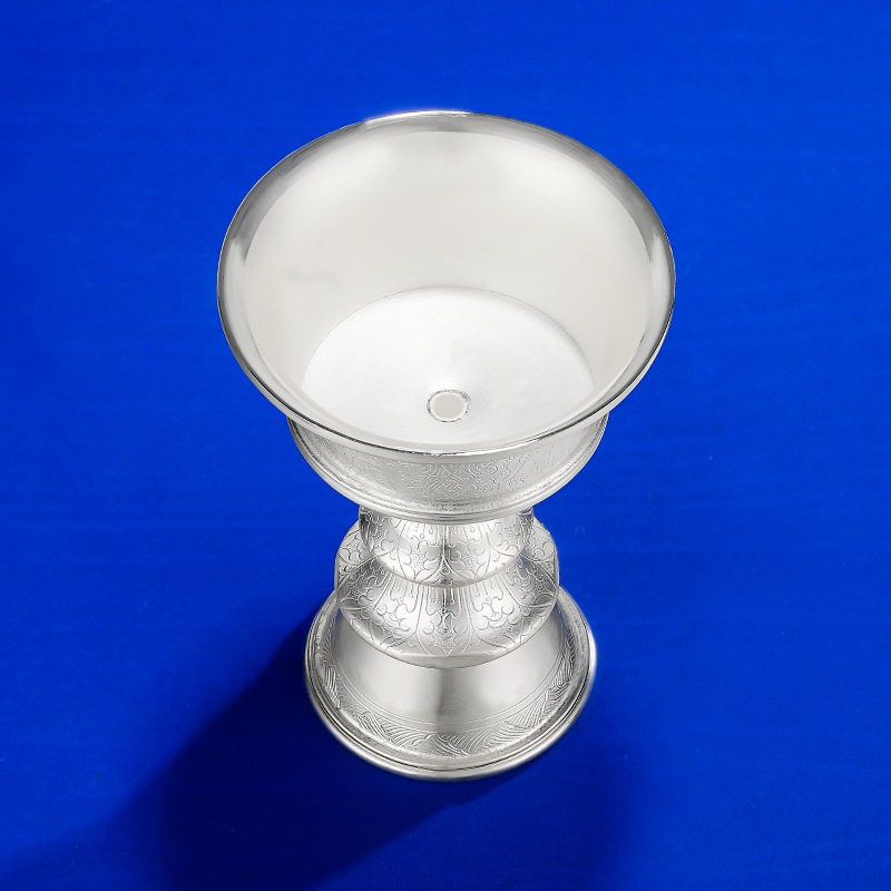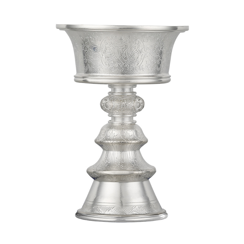 酥油灯底座S990银手工八吉祥酥油灯座长明灯供杯灯座小号7cm