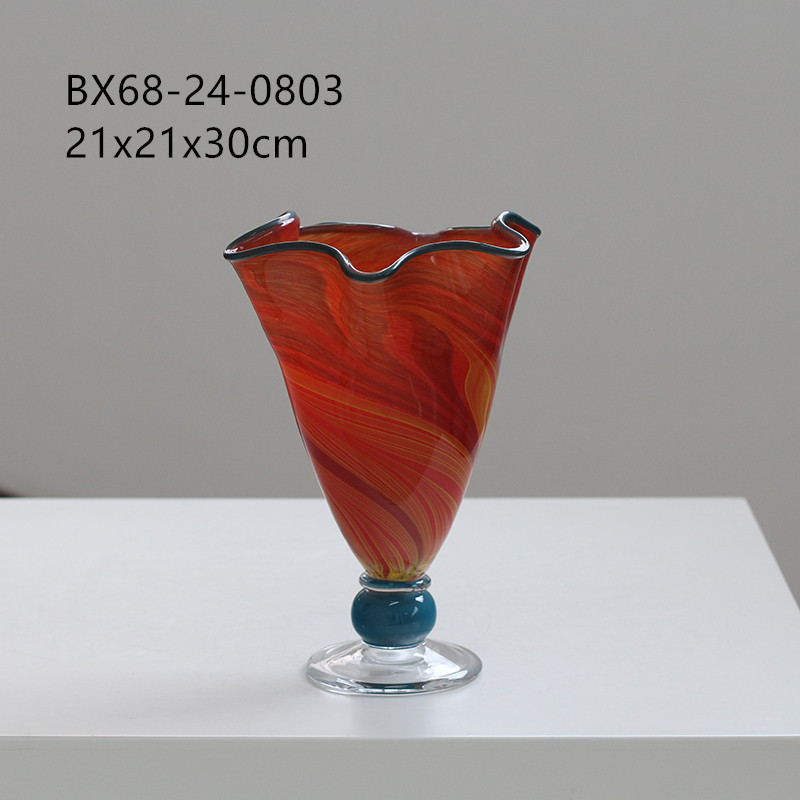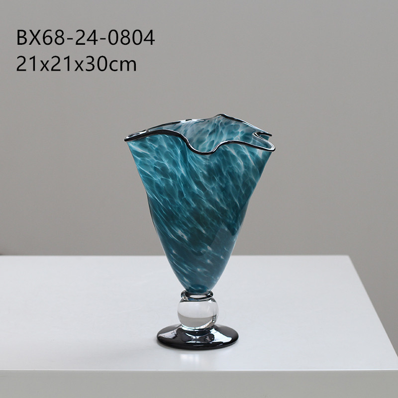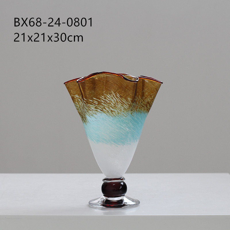 中古风高脚渐变花口褶皱风灯花瓶软装家居酒店设计创意玻璃装饰品