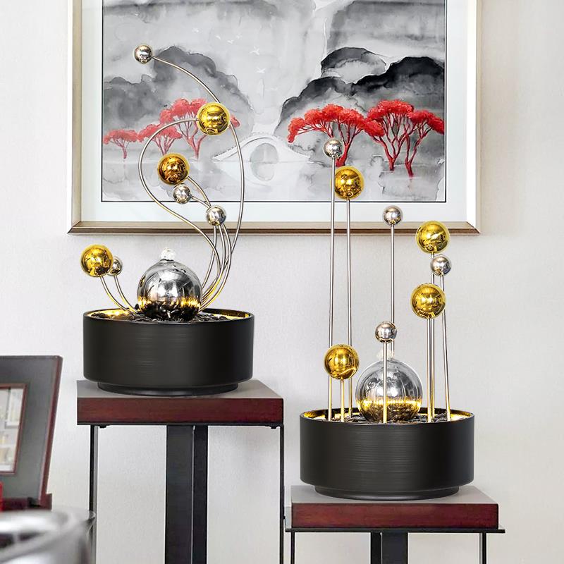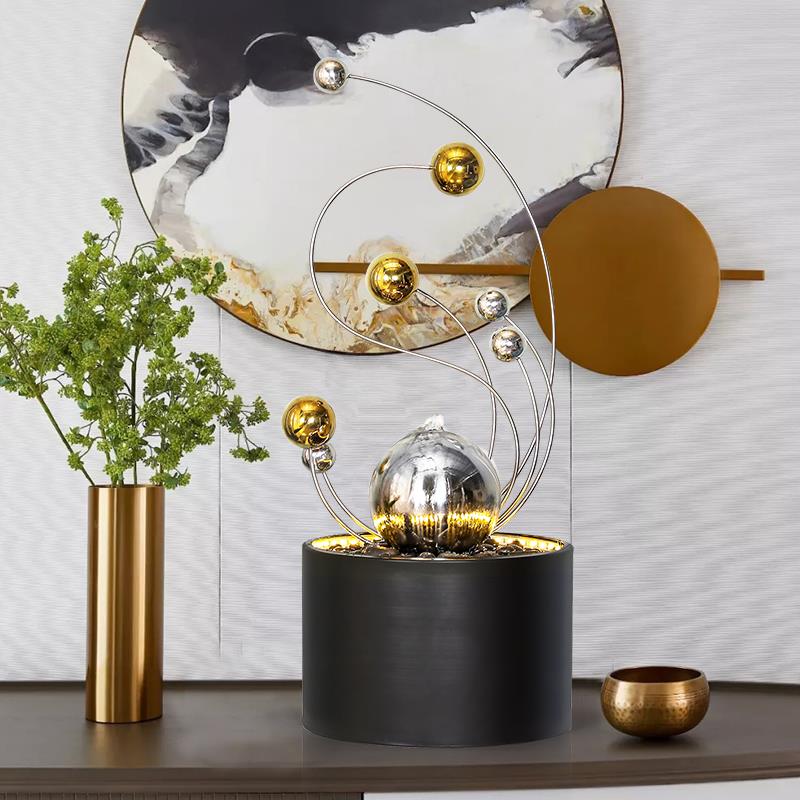 室内喷泉生财轻奢流水摆件现代不锈钢铁艺桌面工艺礼品摆饰送礼装