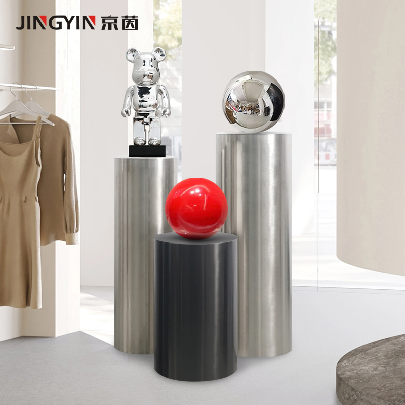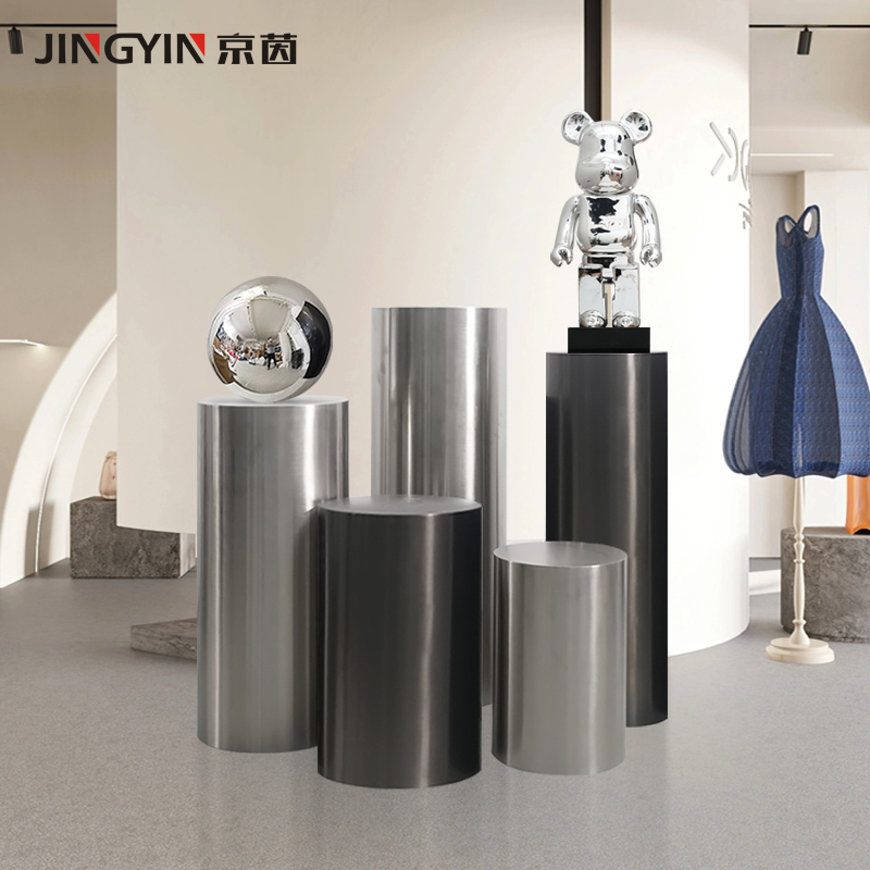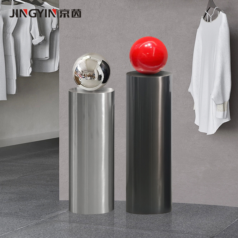 圆柱展示台样板房电视柜旁落地圆形底座橱M窗装饰品雕塑不锈钢摆