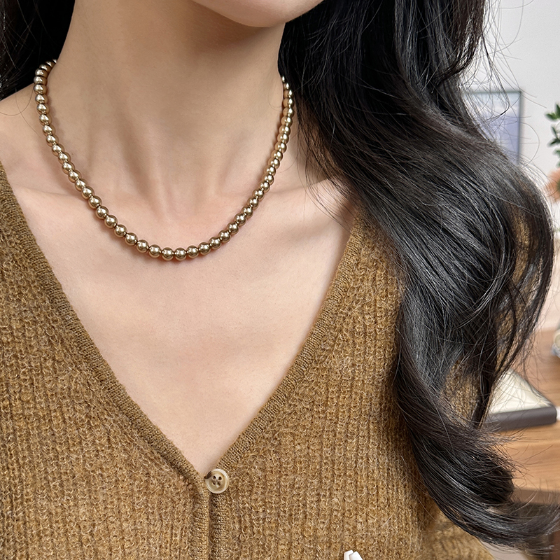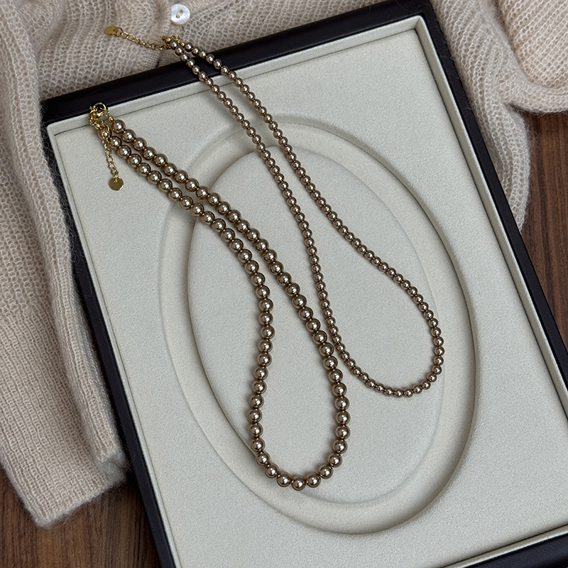 方糖家 复古轻奢摩卡金棕珍珠项链高级感气质毛衣链2024年新款女