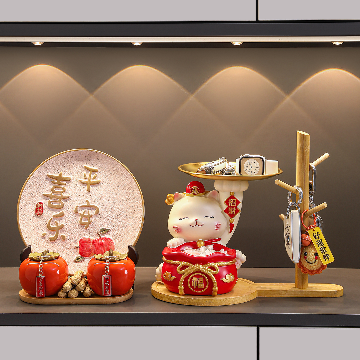 乔迁之喜入宅礼物全套柿柿如意摆件新居玄关鞋柜家居搬家仪式用品