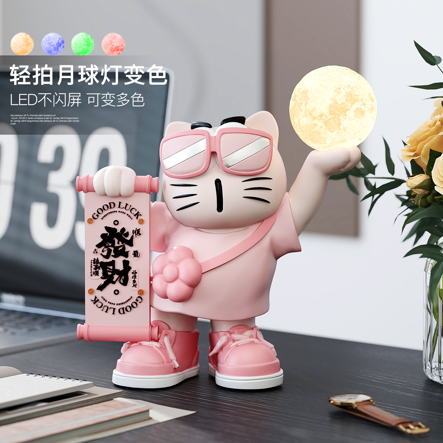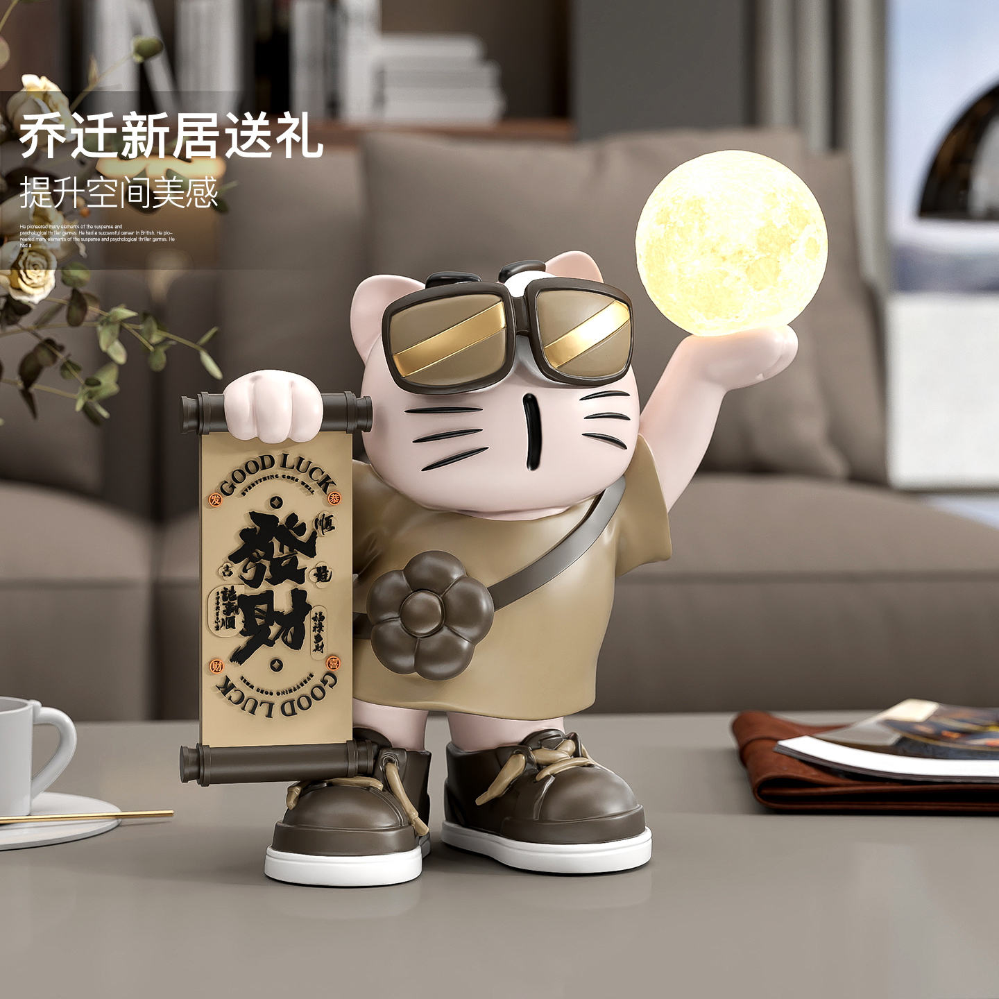 招财猫桌面摆件客厅电视柜软装饰品卧室床头小夜灯送朋友生日礼物