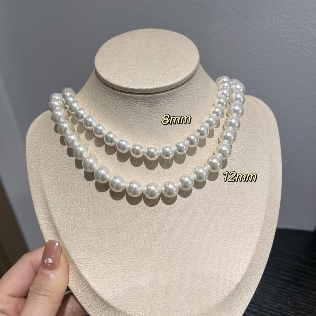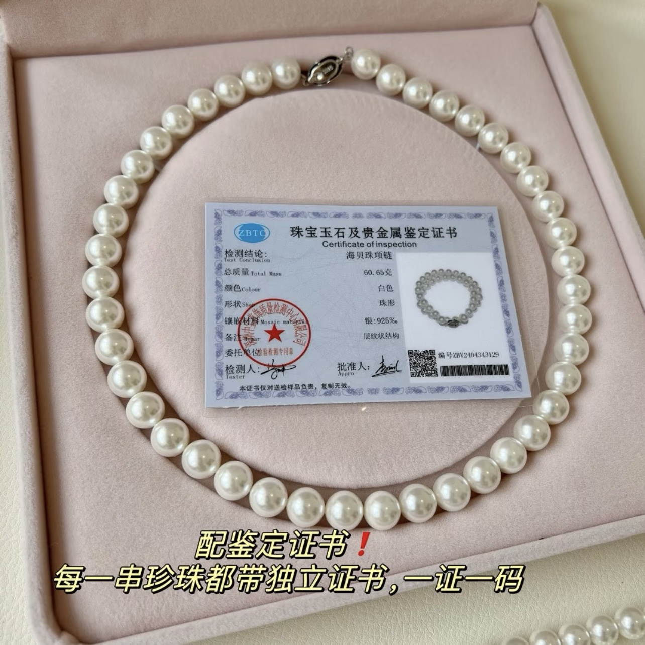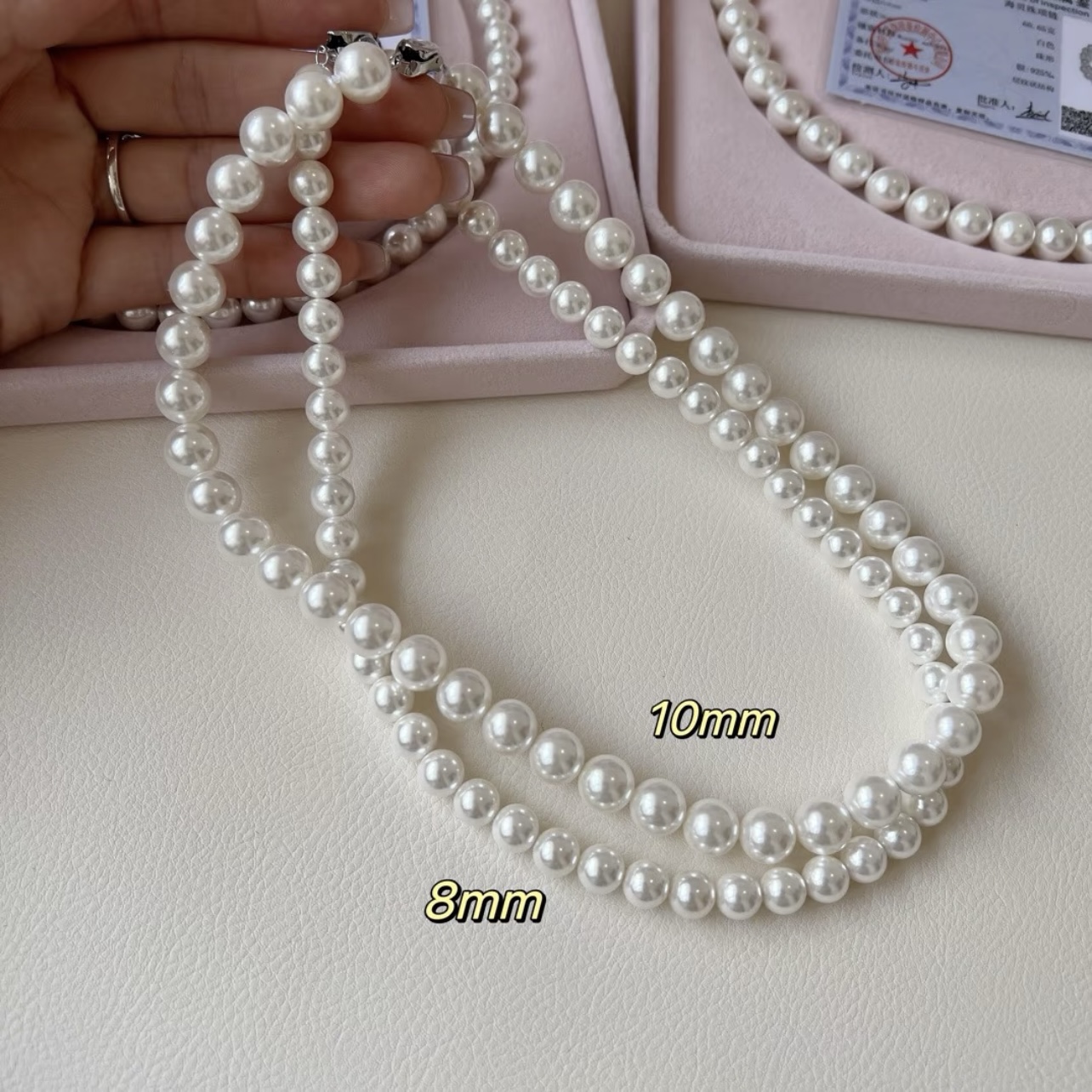8mm、10mm人造强光澳白色珍珠项链 925银锁骨链 送妈妈闺蜜礼物