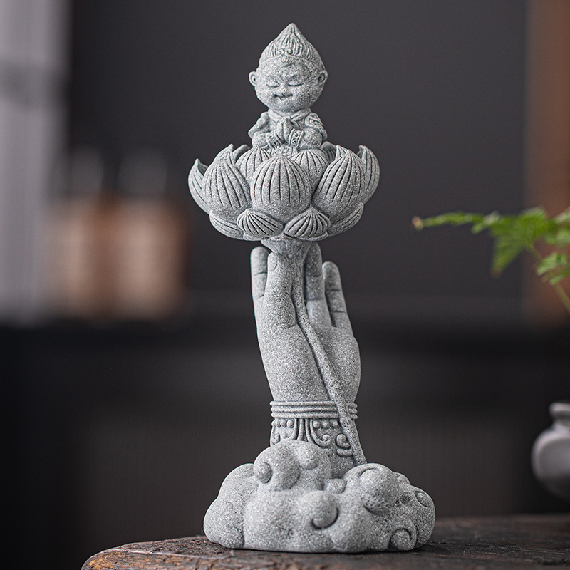 创意佛手莲花悟空茶宠摆件禅意悟空坐莲鱼缸造景园艺盆栽桌面装饰