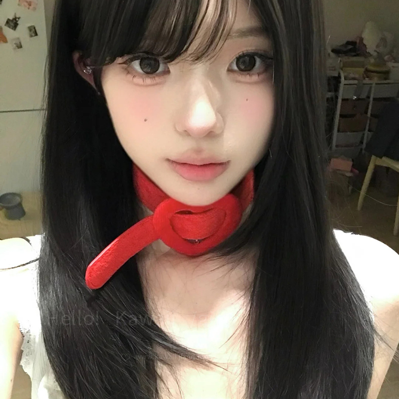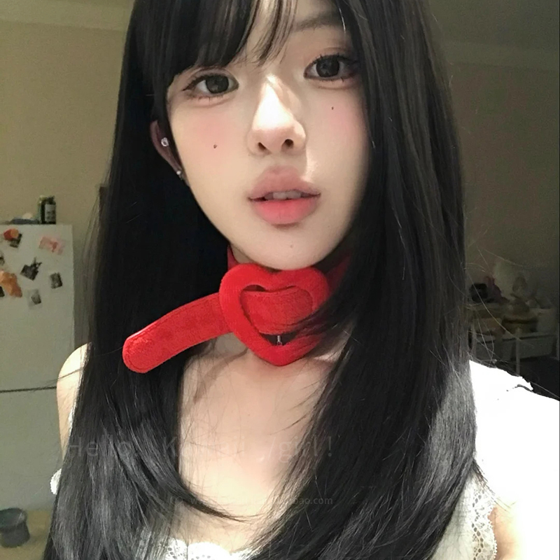 y2k甜酷红色爱心choker项圈韩版复古短绒辣妹锁骨链网红皮革颈链