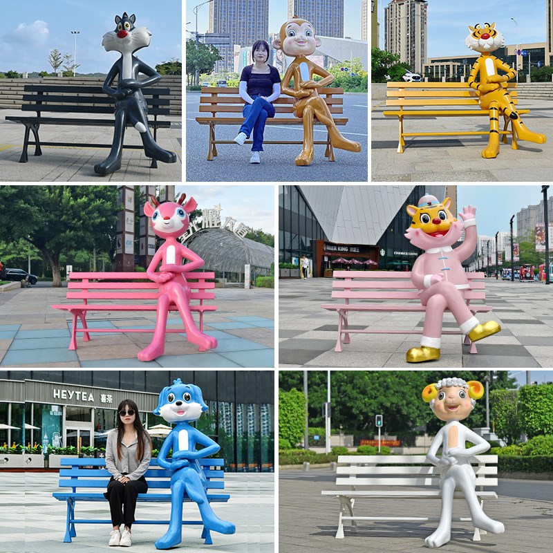 户外卡通座椅动物玻璃钢休闲公园椅幼儿园商场网红美X陈雕塑大摆