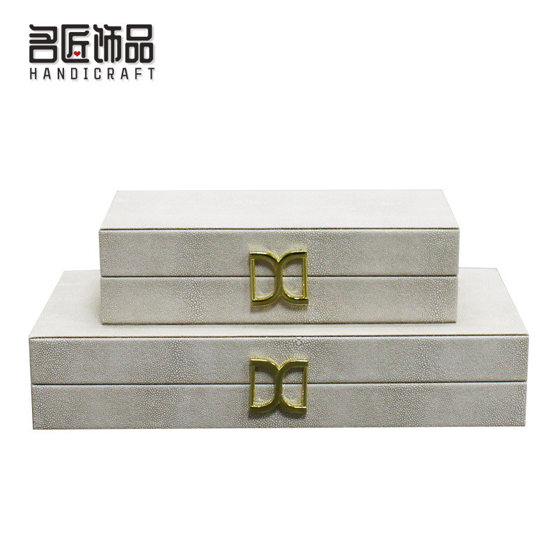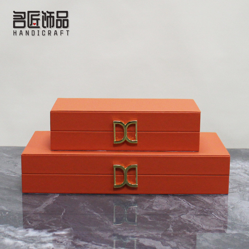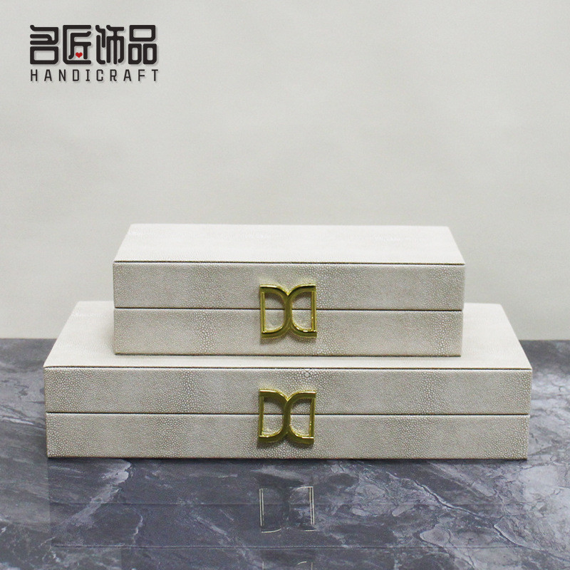 热销新中式木质皮革首饰收纳盒摆件客厅样板间玄关软装桌面卧室装