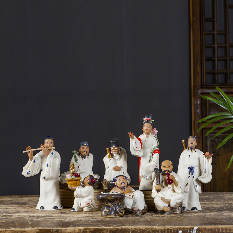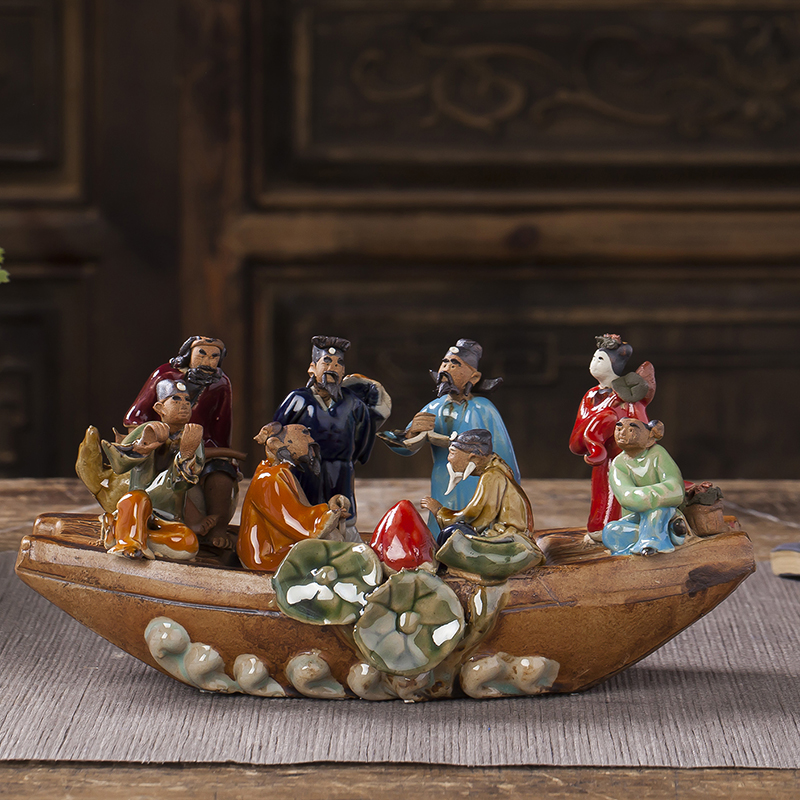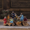 美吔手工石湾陶瓷八仙过海曹国舅蓝采和假山盆景鱼缸造景书房装饰