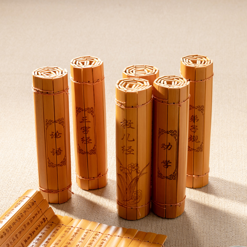 中式竹简书古风摆件家居视频办公桌面装饰品书架创意礼品竹编道具