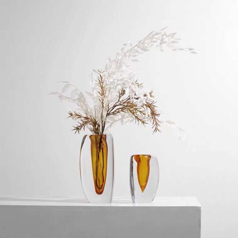 现代家居摆饰玻璃花瓶样板间轻奢摆件餐桌装饰品客厅透明花器插花