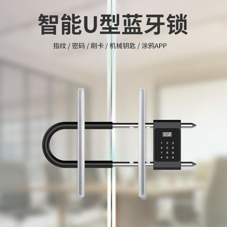 玻璃门U型密码锁插锁双门有框门办公室商铺门推拉门智能挂锁电子