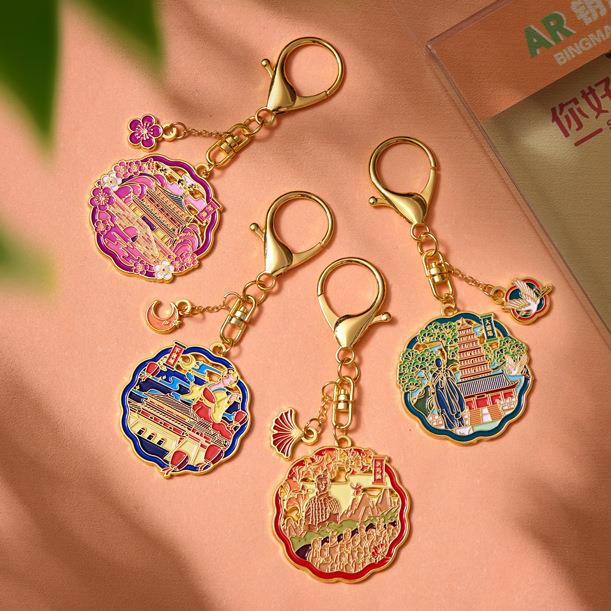 西安文创礼物大雁塔不夜城兵马俑旅游纪念品金属冰箱贴钥匙扣书签