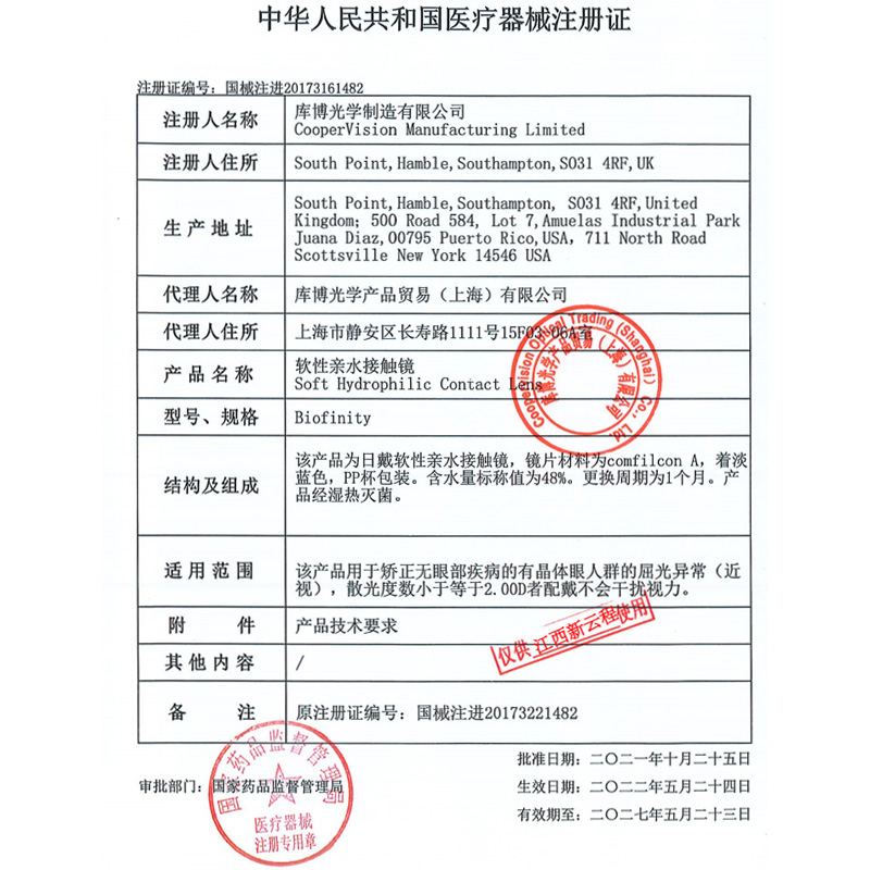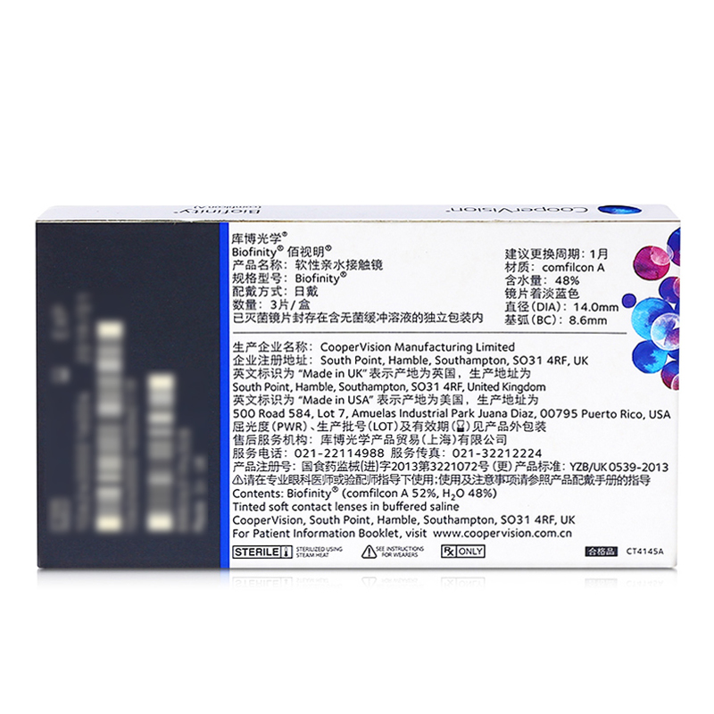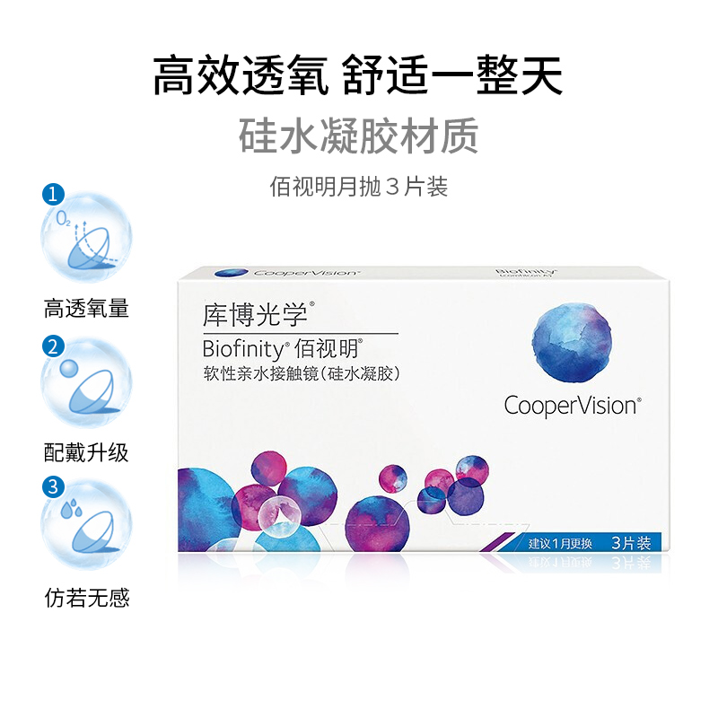 库博硅水凝胶佰视明月抛3片盒装库博光学隐形近视眼镜旗舰店正品