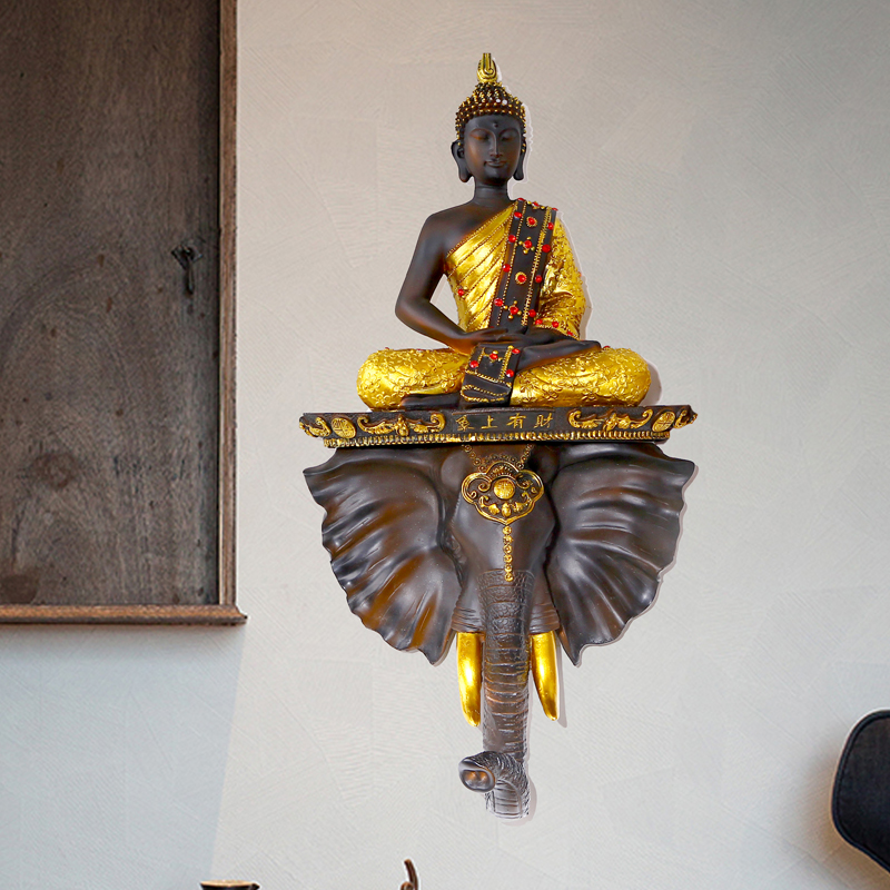 泰式大象头壁挂件酒店SPA会所坐佛摆件东南亚装饰工艺品象上有财
