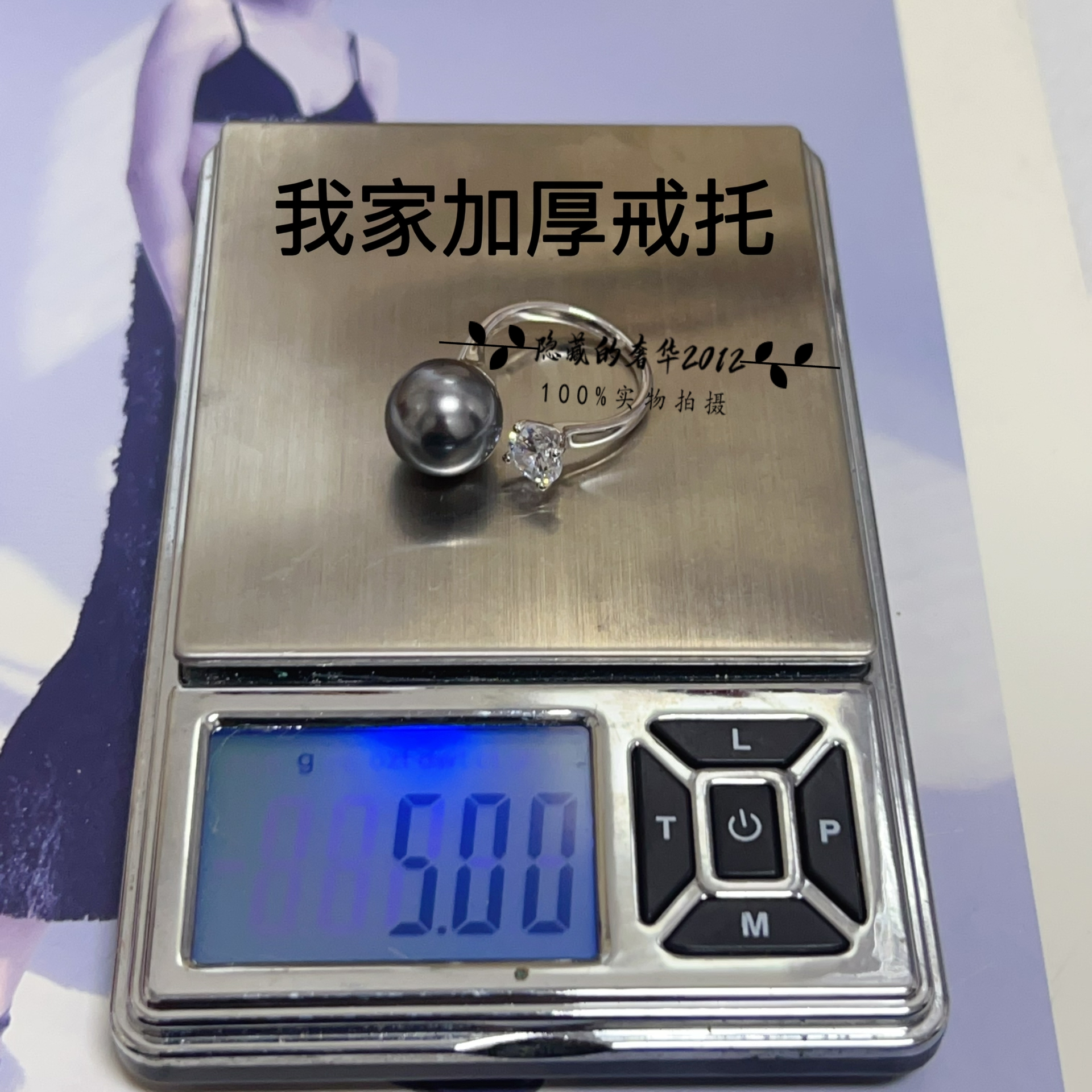加厚通体S925银戒指手镶锆石12mm正版施家华子珍珠开口指环可微调