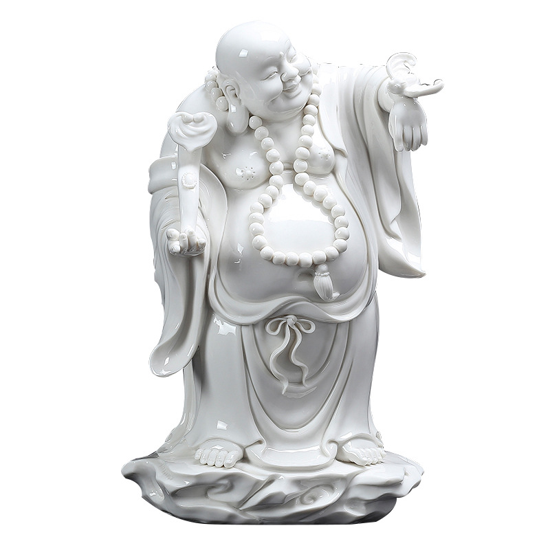陶瓷弥勒佛福在眼前招财佛像大肚笑佛摆件客厅博古架装饰乔迁礼品