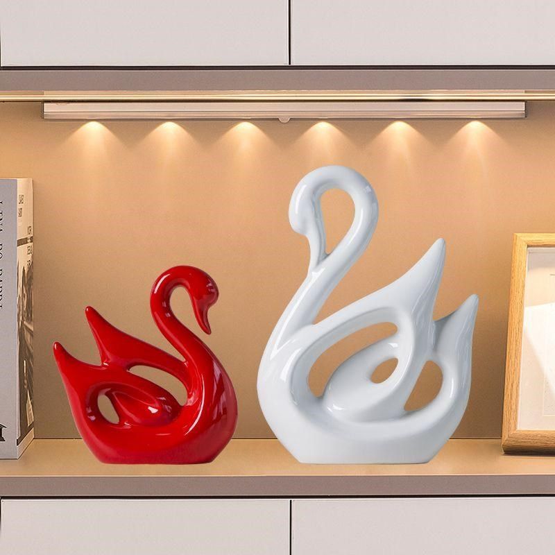 红色摆件高级感客厅天鹅家居轻奢电视酒柜卧室工艺品玄关装饰品
