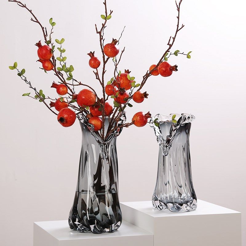 艺术玻璃烟灰色花瓶轻奢摆件客厅茶几电视柜可水S培插花花器装饰