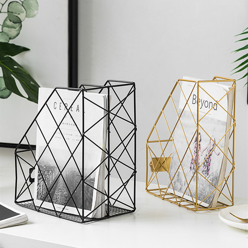 文件杂志办公室用品桌面收纳盒摆件装饰 ins几何铁艺置物架书架