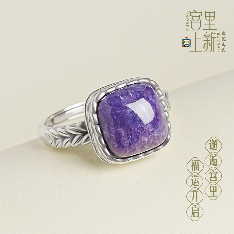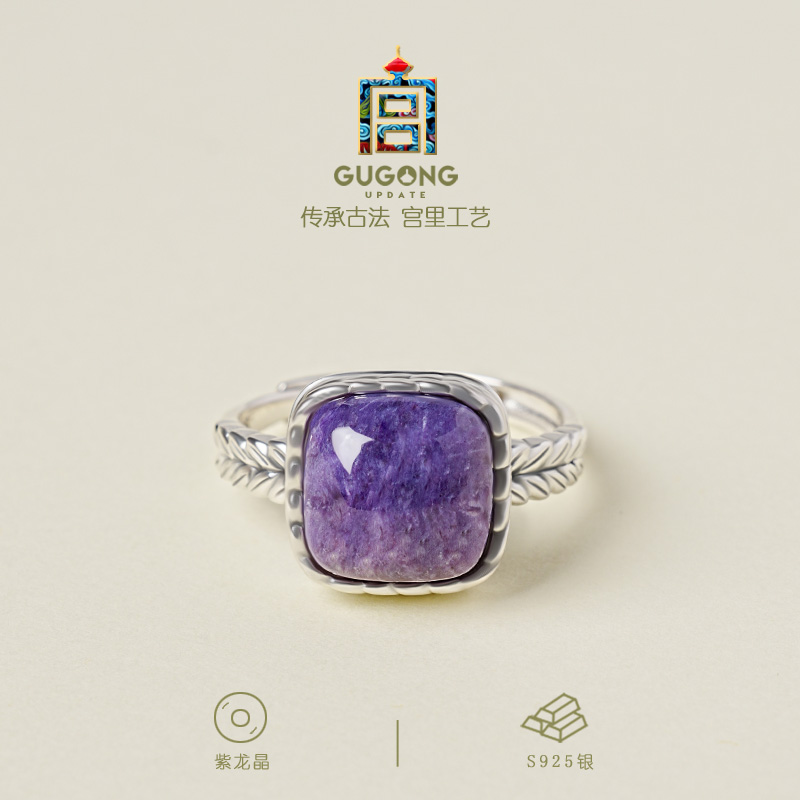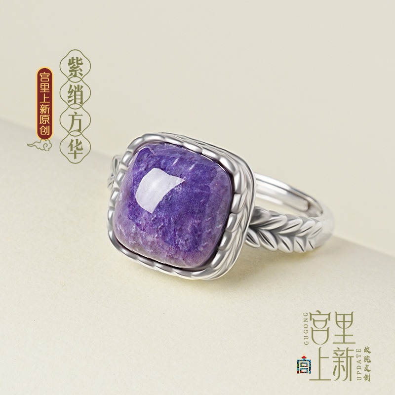 宫里上新紫龙晶戒指女士紫色宝石方糖纯银小众设计指环生日礼物