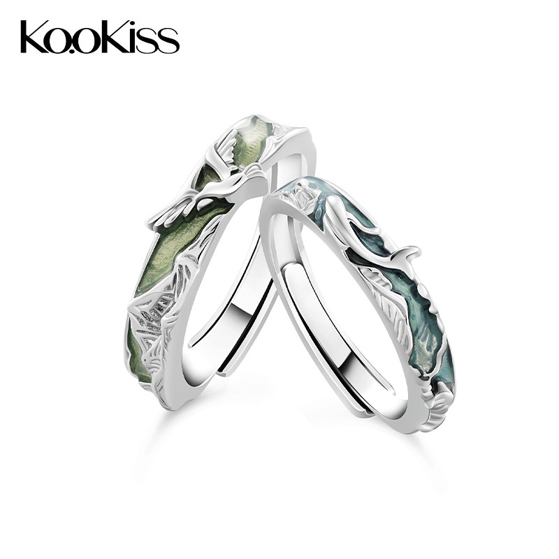 KOOKISS山海之约 轻奢纯银情侣对戒鸟与鱼轻奢小众设计高级感戒指