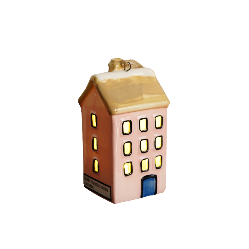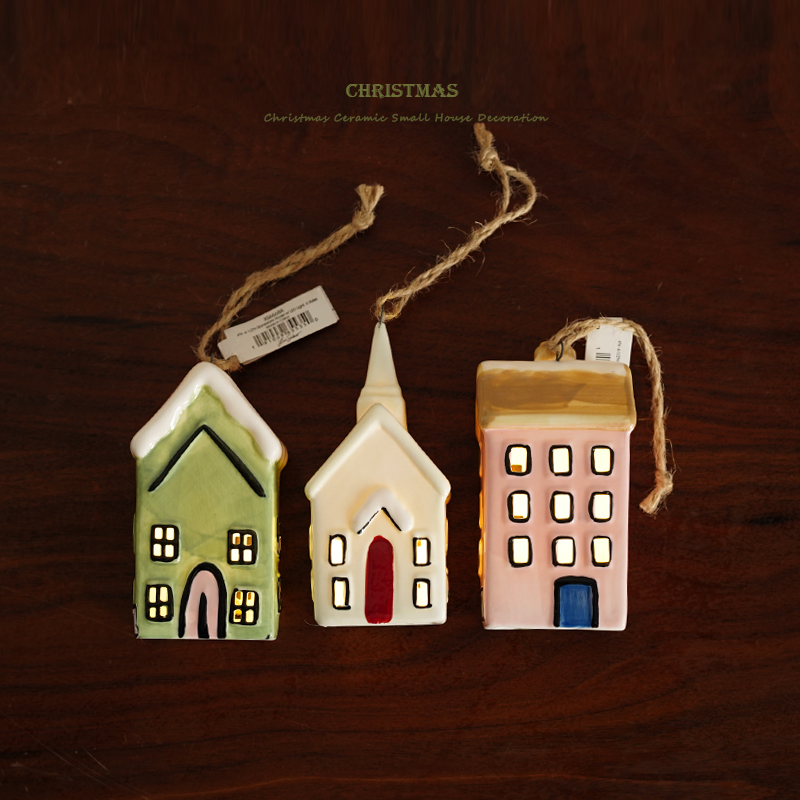 五彩房子 北欧手绘彩色陶瓷房子造型圣诞树挂件 小礼物灯饰摆件