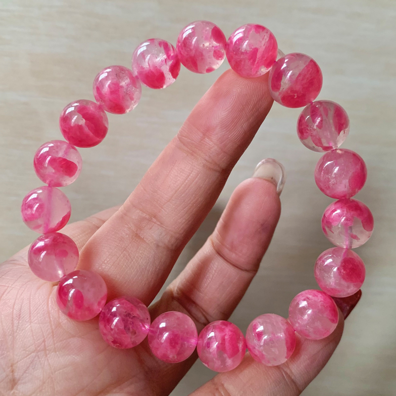 天然共生石英质玉蔷薇辉石手链单圈樱花雨玉化水晶手串一物一图女