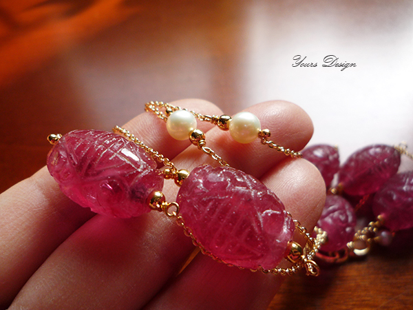 原创手作 老外贸仿碧玺雕花琉璃珍珠毛衣链多层长项链 优芝设计