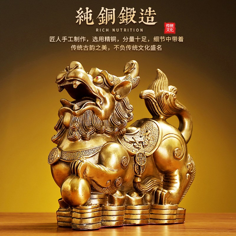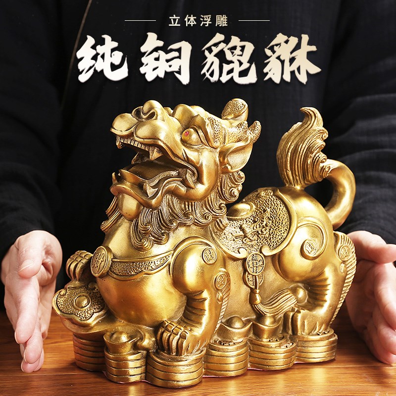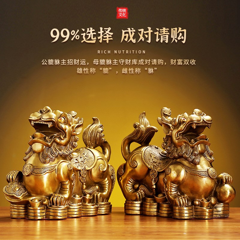 铜貔貅摆件一对全黄铜貔皮丘客厅店铺H装饰品办公室送财家居饰品