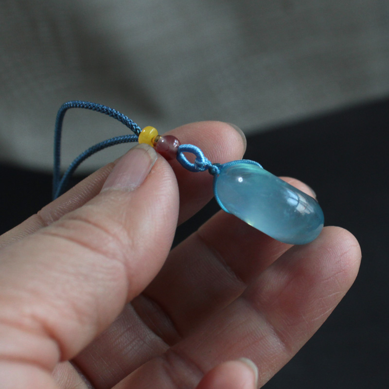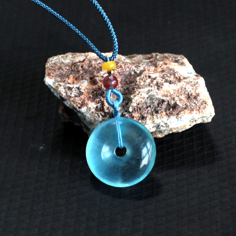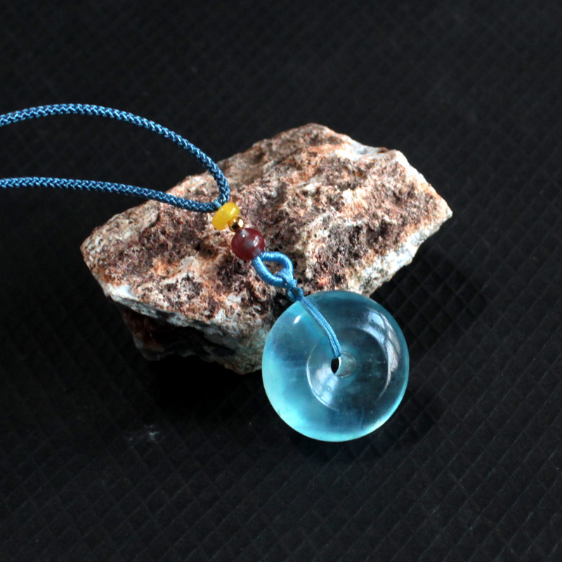 水玉冰魄海蓝宝平安扣吊坠充填海蓝宝项坠项链冰种蓝色透送绳实物