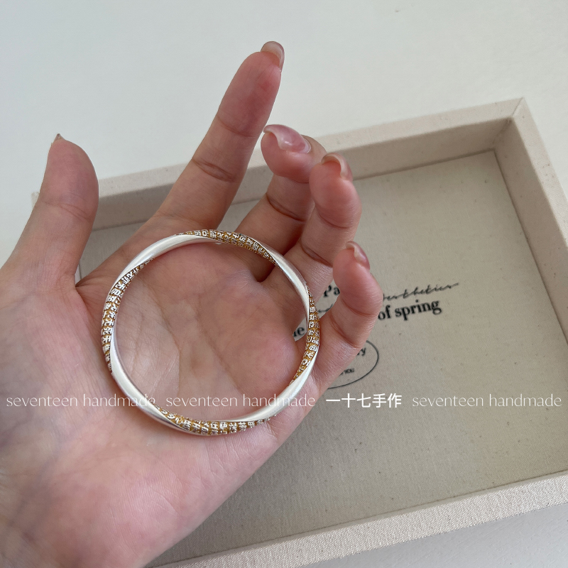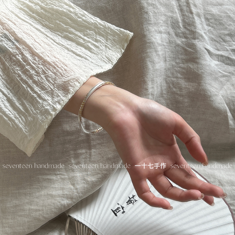 一十七手作 实心足银999.9古法描金般若心经磨砂闭口轻奢手环手镯